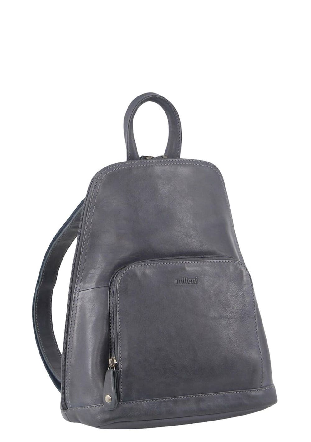 Milleni Anya Women's Leather Twin Zip Backpack Ash