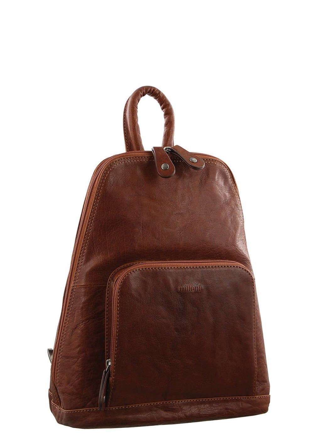 Milleni Anya Women's Leather Twin Zip Backpack Chestnut