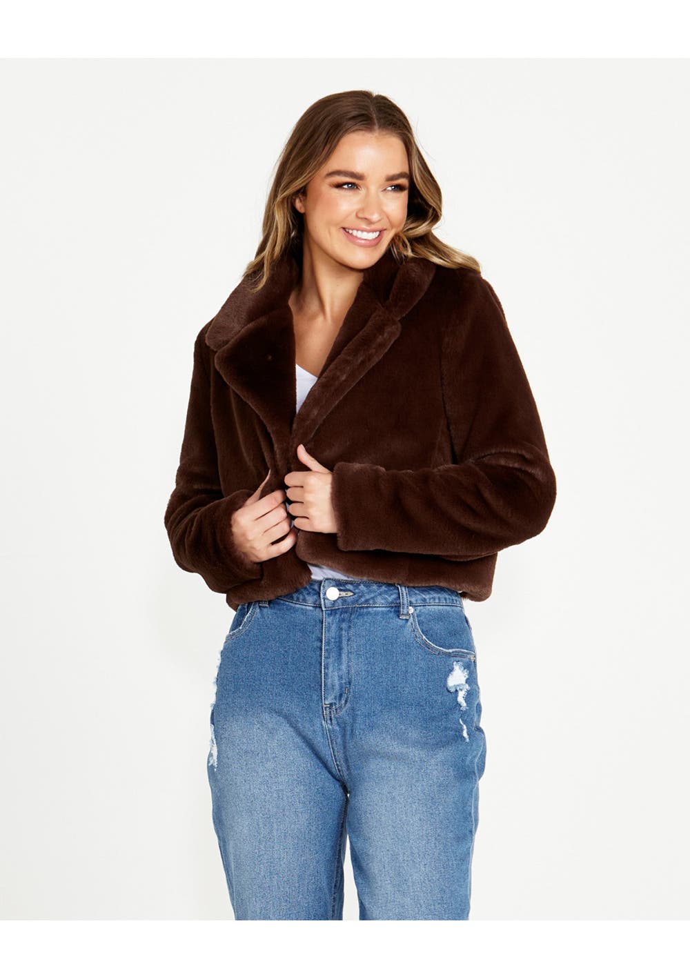 Sass - Xanthe Cropped Fur Jacket - Chocolate