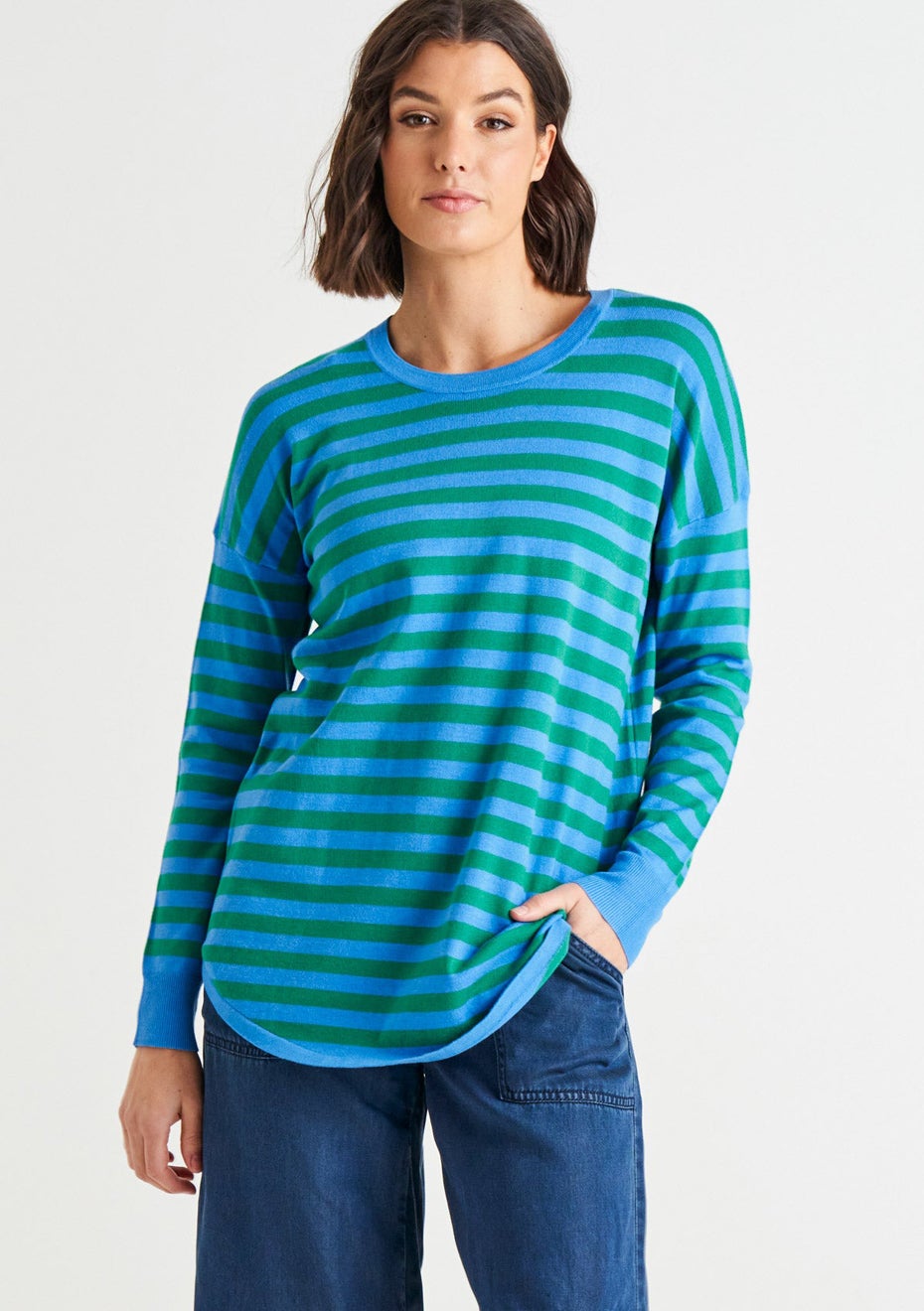 Betty Basics - Sophie Knit Jumper - Green/Blue Stripe