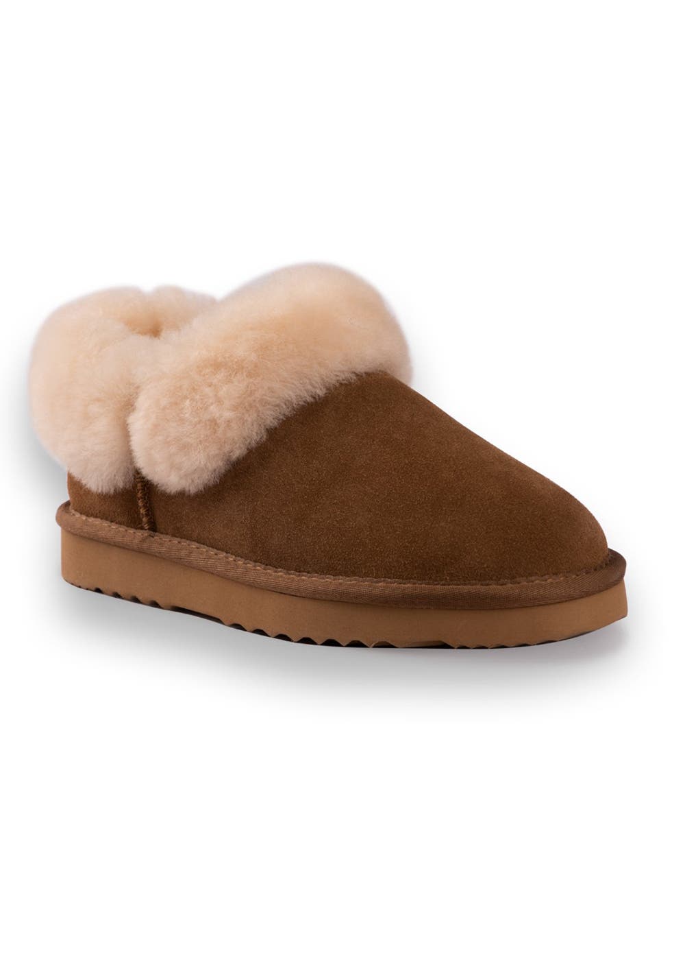 Aus Wooli Ugg Unisex Sheepskin Wool Traditional Ankle Slippers - Tan