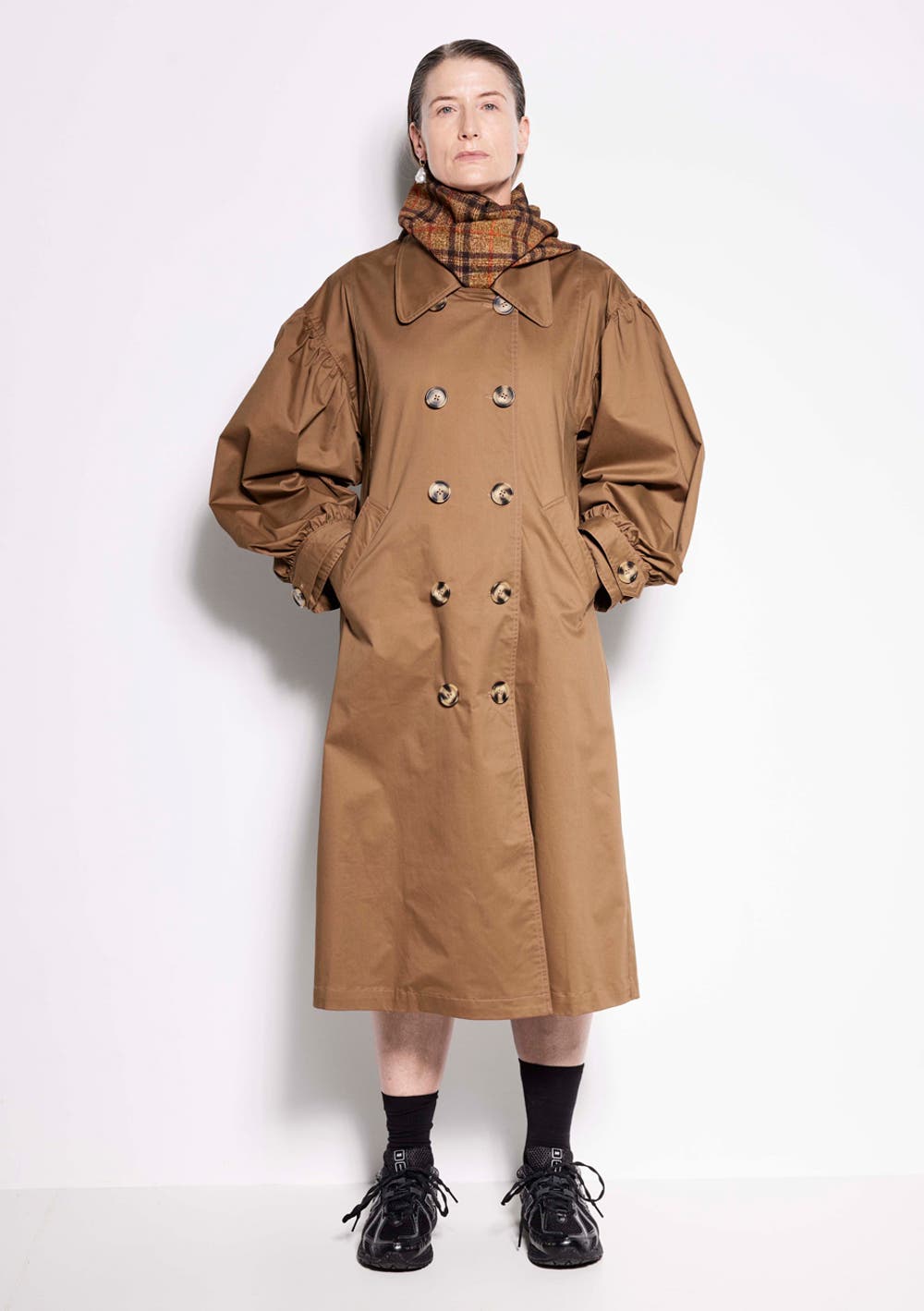 It is how a trench should be without a fussy waist belt and with a boxy shape designed to wear over blouses, sweats and or a jumper underneath.