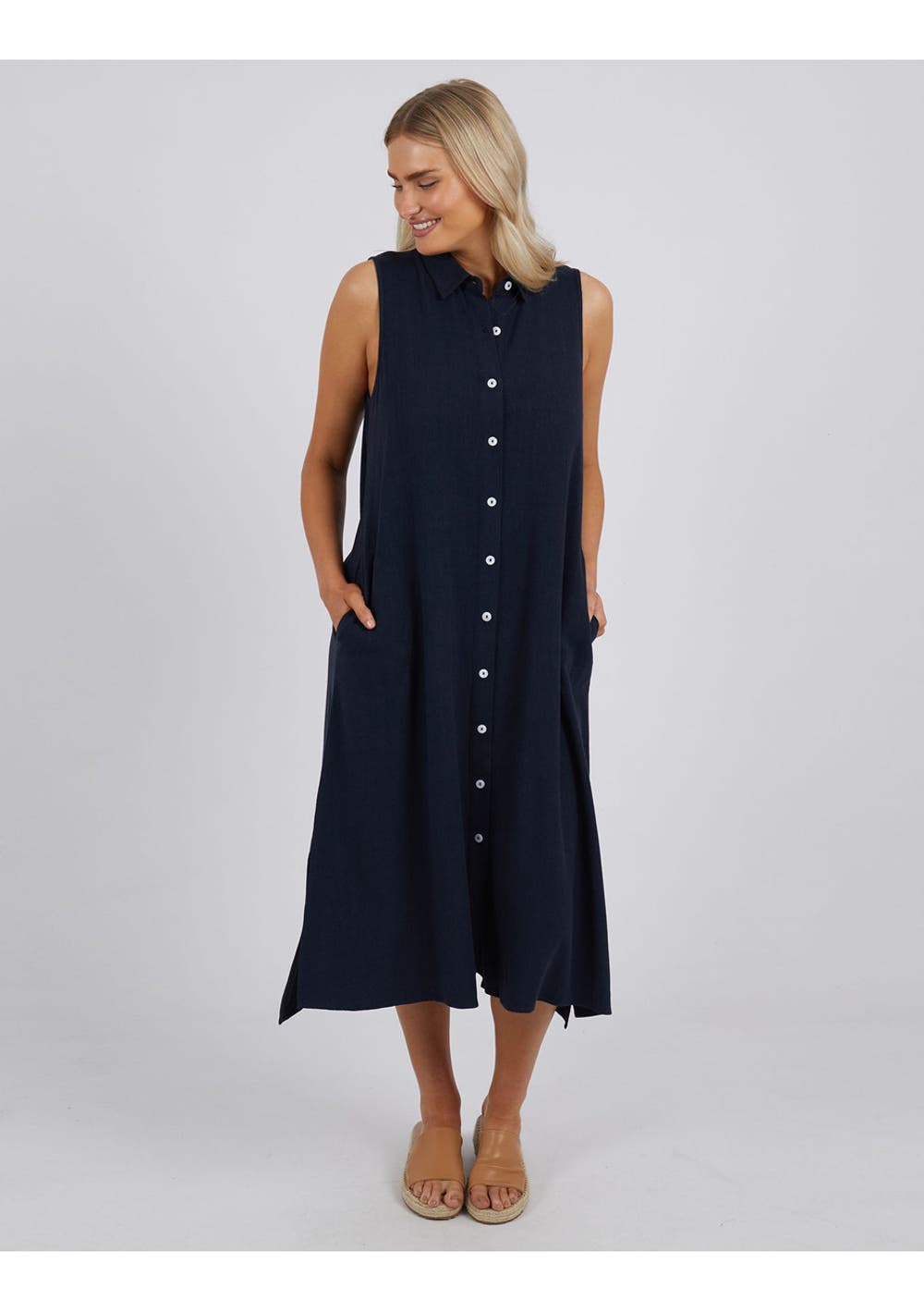 Elm - Cara Sleeveless Shirt Dress - Dark SapphireCLEARANCE