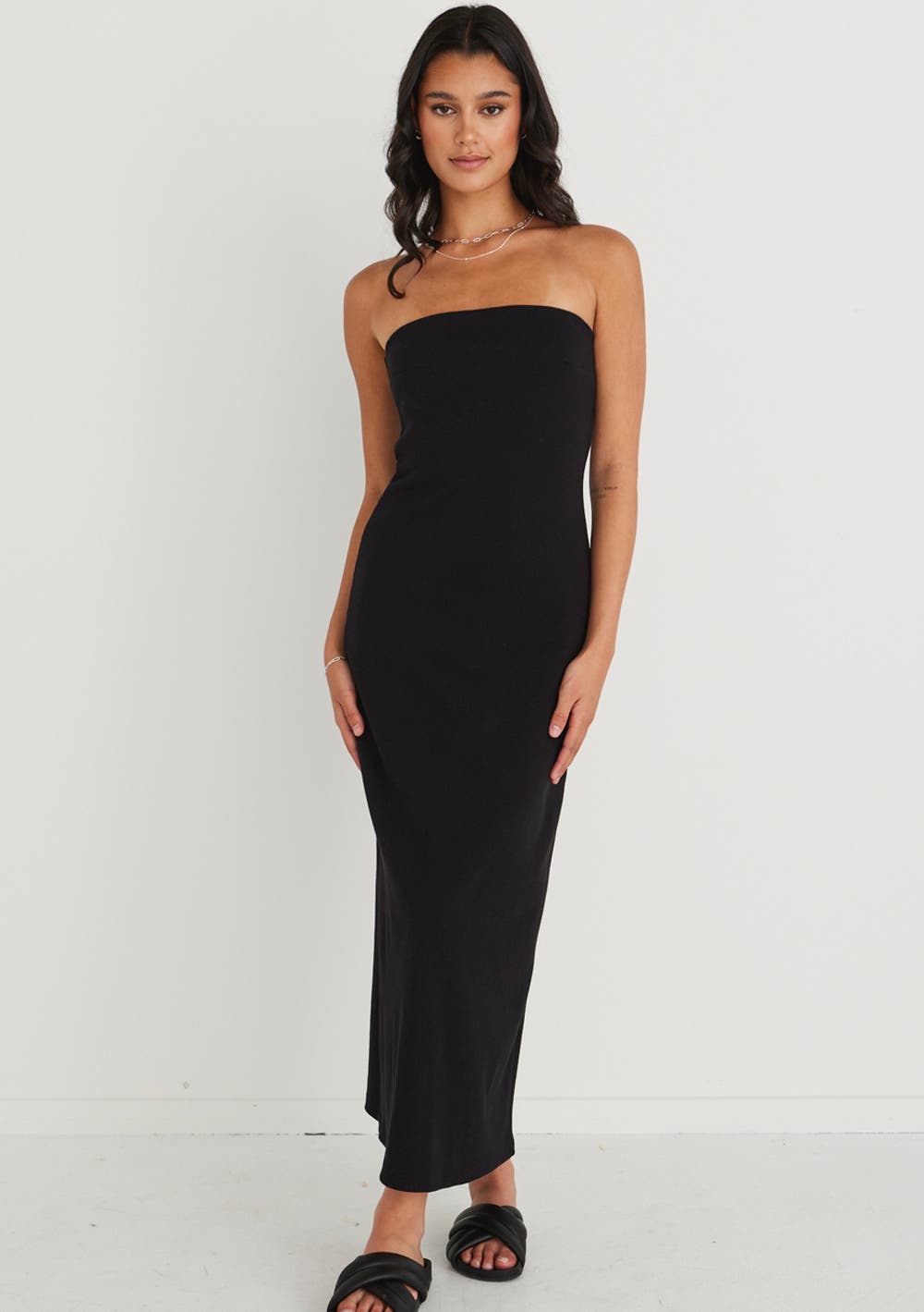 Flo & Frankie - Luca Black Strapless Rib Jersey Maxi DressCLEARANCE