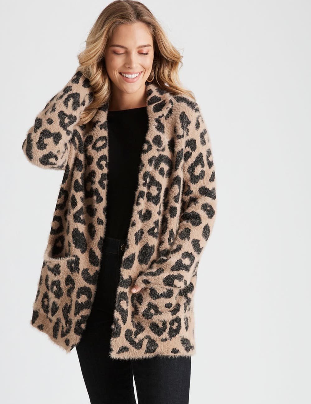 ROCKMANS - Womens - Coat - Winter - Brown - Jacket - Knit - Long Sleeve - Animal - Length Long - Warm Cozy - Casual Fashion - Office Wear Work ClothesCLEARANCE