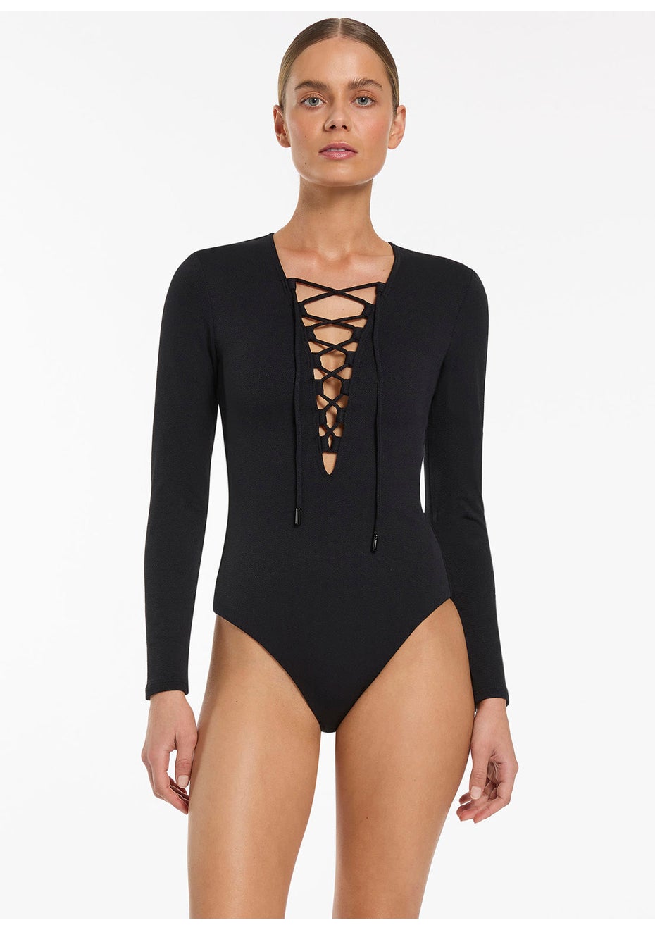 Jets - Joali Tie Front Plunge Surfsuit - Black