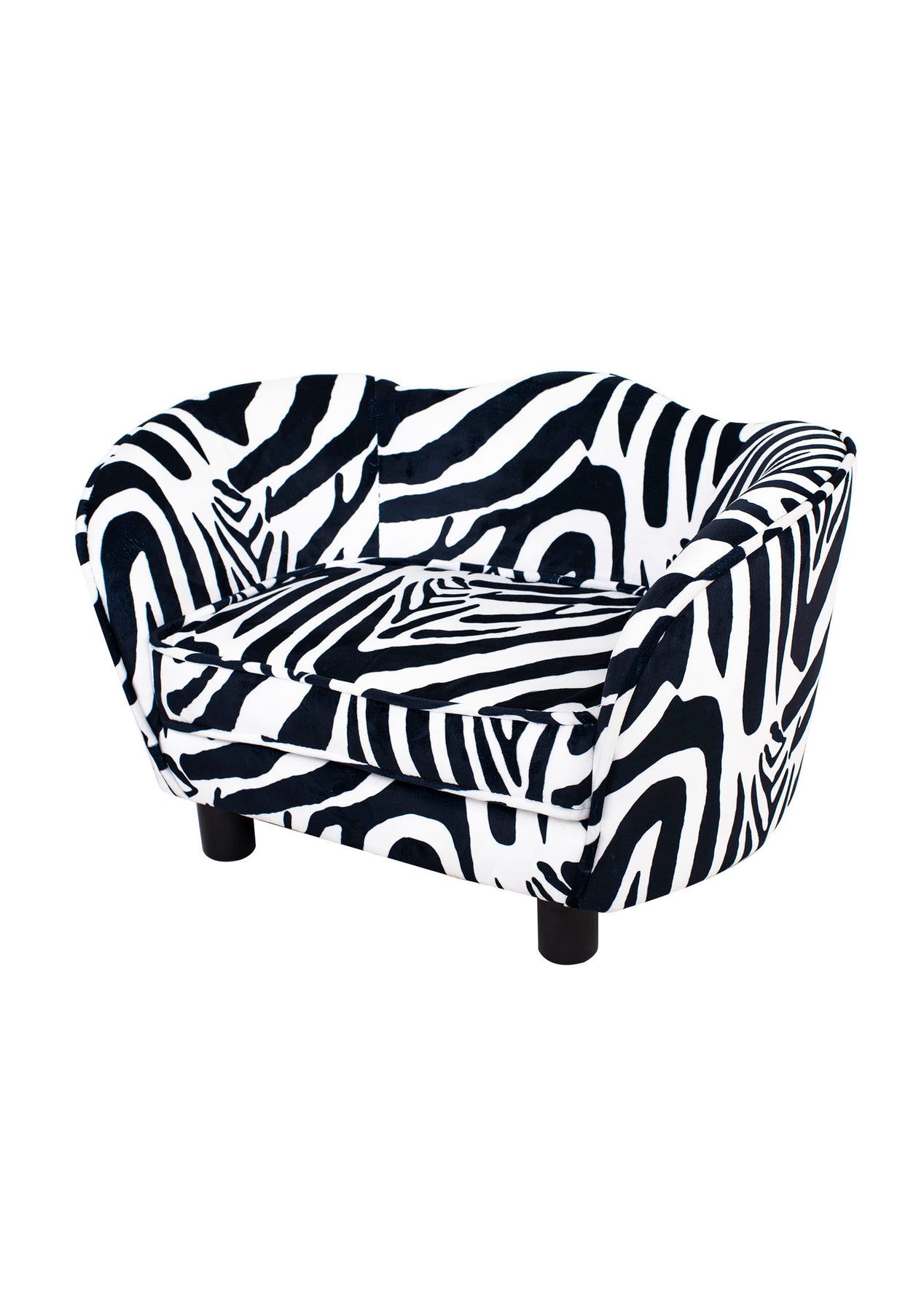PR8530 Pet Sofa 604A pet sofa designed to provide superior comfort to your loved one. What pets love more than delicious meals is a soft and comfortable sofa. This pet sofa is constructed from a sturdy and solid wood structure and a soft and cozy surface upholstered with a high-density sponge, providing your four-legged friends a luxurious and comfortable relaxing and sleeping space. The specially-designed four legs raise the bed off the floor which can effectively protect against mold, mildew, and small insects, keeping your lovely animals healthy. The height of the bed is appropriate for him or her to get in and out of with ease. FeaturePerfect contoursSoft and comfortableVelvet coverEven weight distributionHigh-density foamFloor protectorEasy to cleanEasy assembleSpecificationColour: zebraWeight capacity: 50kgDimension: 66 x 45 x 39 cm Packaging Dimensions: 68x44x36CM