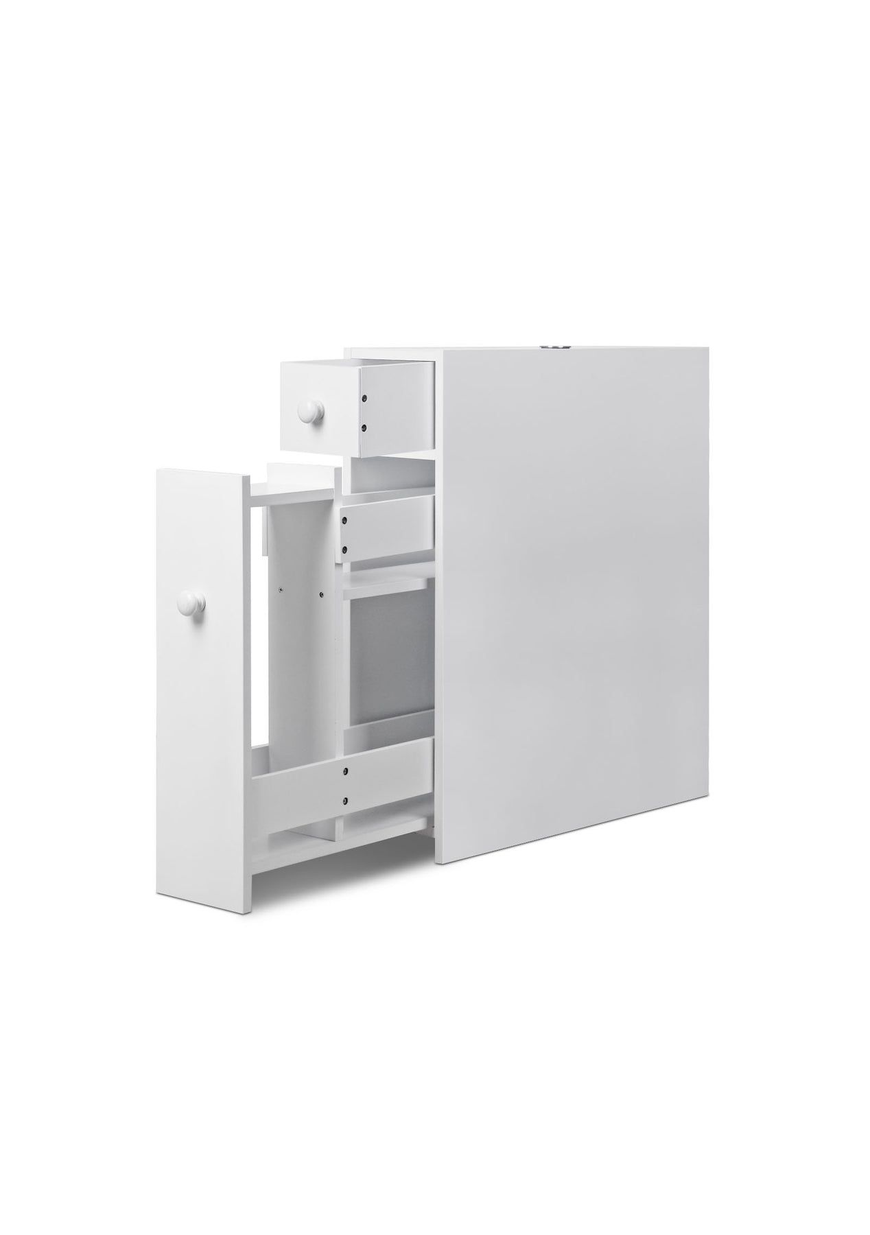 PR2892 Update your bathroom to turn a chaotic routine into a calm one. With this cabinet, you can store your daily bathroom items and access them easily knowing where they are. It creates space and order too, making your bathroom a retreat that you're after.Made of quality and eco-friendly MDF board, it is more stable and stands up better in heat and humidity. Designed to be slim and sleek, this toilet caddy is your best choice for your compact bathroom. FeaturesPerfect fixture for bathroomConvenient to store daily bathroom items- Shampoo, make-up, toilet paper, cleaning products, etc.Slim and space-savingStorage drawersTissue box holderDurable and sturdy constructionEasy to clean with wipesDimensions: W16 x D50.2 x H58.2cm Box Dimensions:60xmx51.5cmx6.7cm Please click here for the assembly instructions