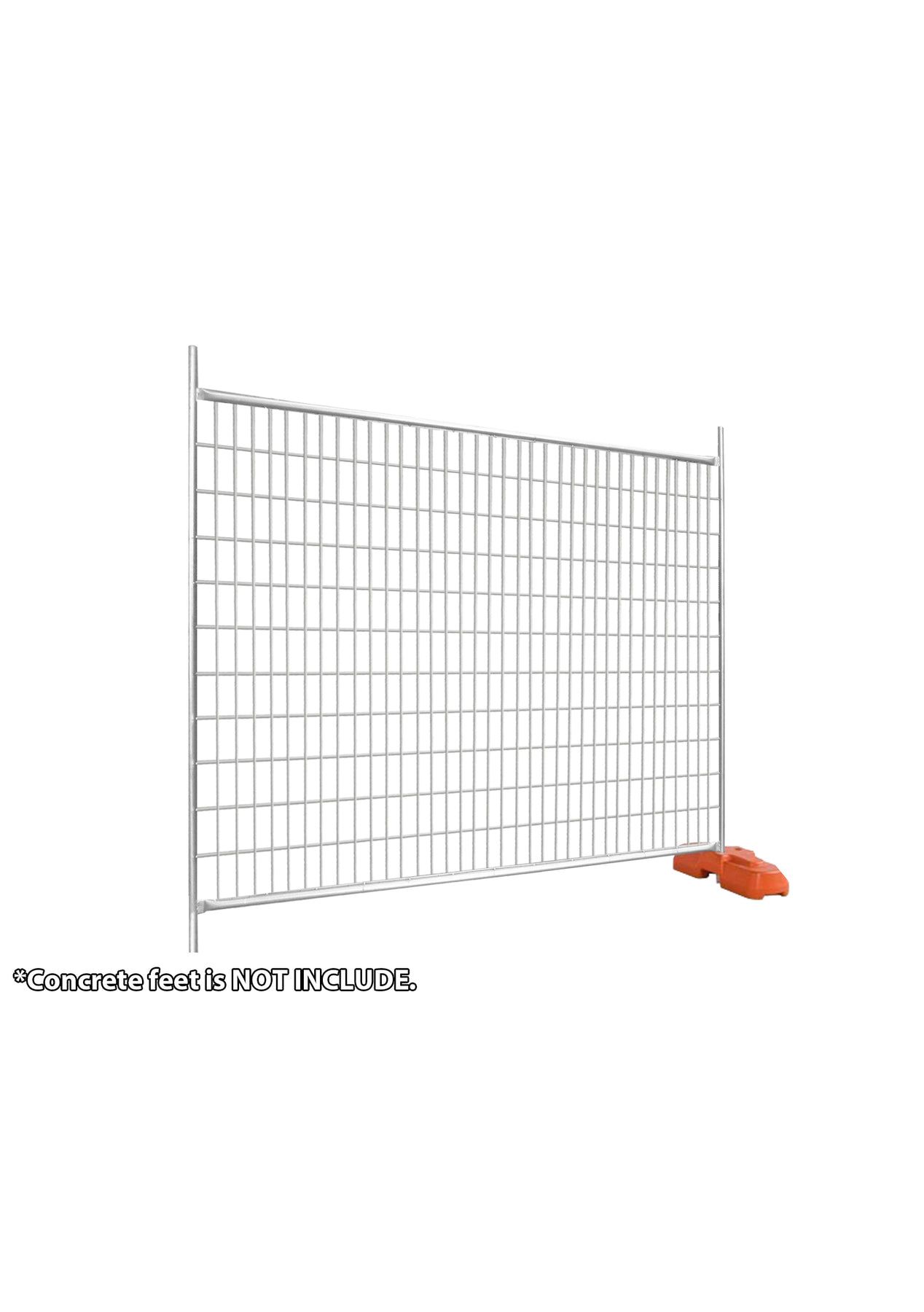 PR1363 (1) **THIS LISTING IS FOR FENCE PANELS WITHOUT FEET *** If you require urgent temporary fence, our Galvanized Temporary Fence is your best choice. Modern temporary fence has proven to be the construction and events industries first choice for site demarcation to direct the public away from construction hazards or secure areas. Our heavy duty temporary fence panels are designed for long life and repeated use. Materials aregalvanized prior to welding so the joints are zinc sprayed after welding. When used in conjunctionwith our plastic/concrete feet and clamps, it generates a complete temporary fencing system thatis extremely stable, versatile and cost efficient. Price for 1 fence panel only + clamp and screws. FEATURES*Easy installation and removal*Designs and built to withstand the harshest environments*Economical temporary fence- can be used time after time*Recommended for Residential and commercial builders, construction industry, event security, pet run and more SPECIFICATIONPanel Size: 2400mm(L) x 2100mm(H)Pipe frame: 32mm O.D *2mmWire Diameter: 4mm150x60mm spacingGalvanizing - Min 42 microns Material: Pre-galvanized pipesSurface Treatment: Spray paint