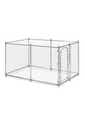 PR666376 (2) Keep your pets safe with this outdoor galvanized steel frame dog run. This multipurpose dog run is ideal for training, playing or exercising. The sturdy and heavy-duty galvanized steel construction and chain link mesh ensure your pets stay out of trouble while providing ultimate ventilation, also allows your pet to move about freely with no chance of them slipping out of the sturdy structure. Ideal for private homes, pet rescue shelters, or pet hotels the easy to assemble pet enclosure is must have for pet lovers. Please note: *This item is covered by 12 months return to base warranty. Warranty is not covered if the product has been damaged by general wear and tear, accident, misused or involved in accidental or natural disasters.*If you intend to set it up on the grass or to bolt it down on concrete. It is recommended to have an anchoring mechanism applied just in case of windy weather. FEATURESFully galvanized chain mesh & frameSecured & safe locking systemHigh quality and durable constructionGreat for keeping your dog safe and secureCan be used as traditional kennels or dog runSuitable for cats and other animals as wellEasy to move and assembleSPECIFICATIONMaterial: Galvanized steelWire diameter: 2.3mmSize of the chain link fencing: 6x6cmOverall dimension: 4x2.3x1.8m Please click here for the assembly instructions