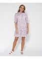 Mid thigh length dress with dropped waist, high crew neck and elasticated finishing on the neckline and cuffs with self-fabric ruffle trim 100% linen