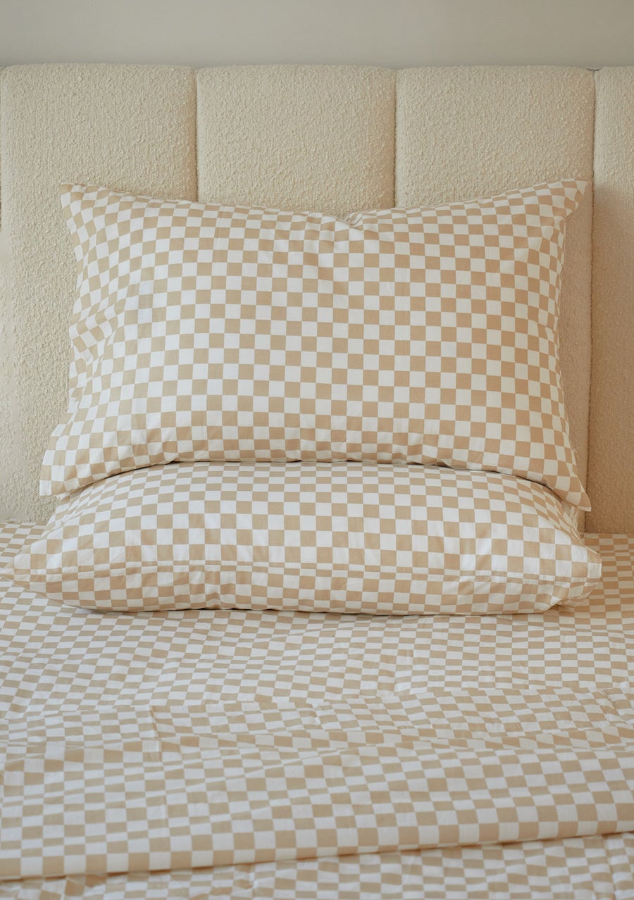 George Collective - 100% Stonewashed Cotton Pillowcase Pair - Checkerboard NaturalPREORDER