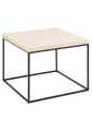 The first thing you will probably notice about this coffee table is the expressive tabletop stemming from the square steel base. It is thick and adorned with a travertine look, which softens the robust top with its subtle appearance. So, if you are looking for an accent piece that should set a calm atmosphere in the space, then this is the one.