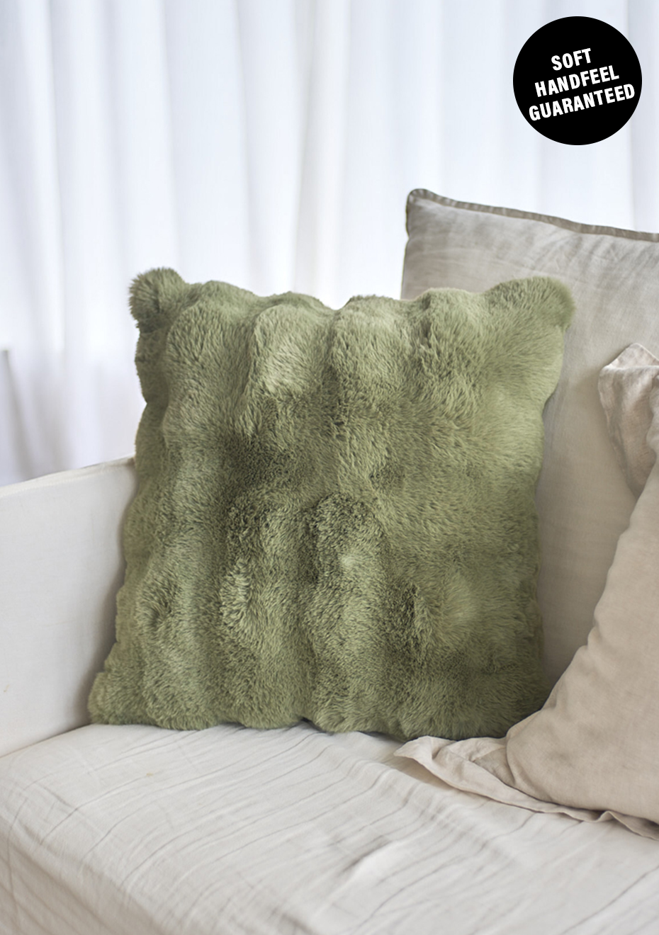 George Collective - SUPERSOFT Bubble Faux Rabbit Fur Filled Cushion - OlivePREORDER