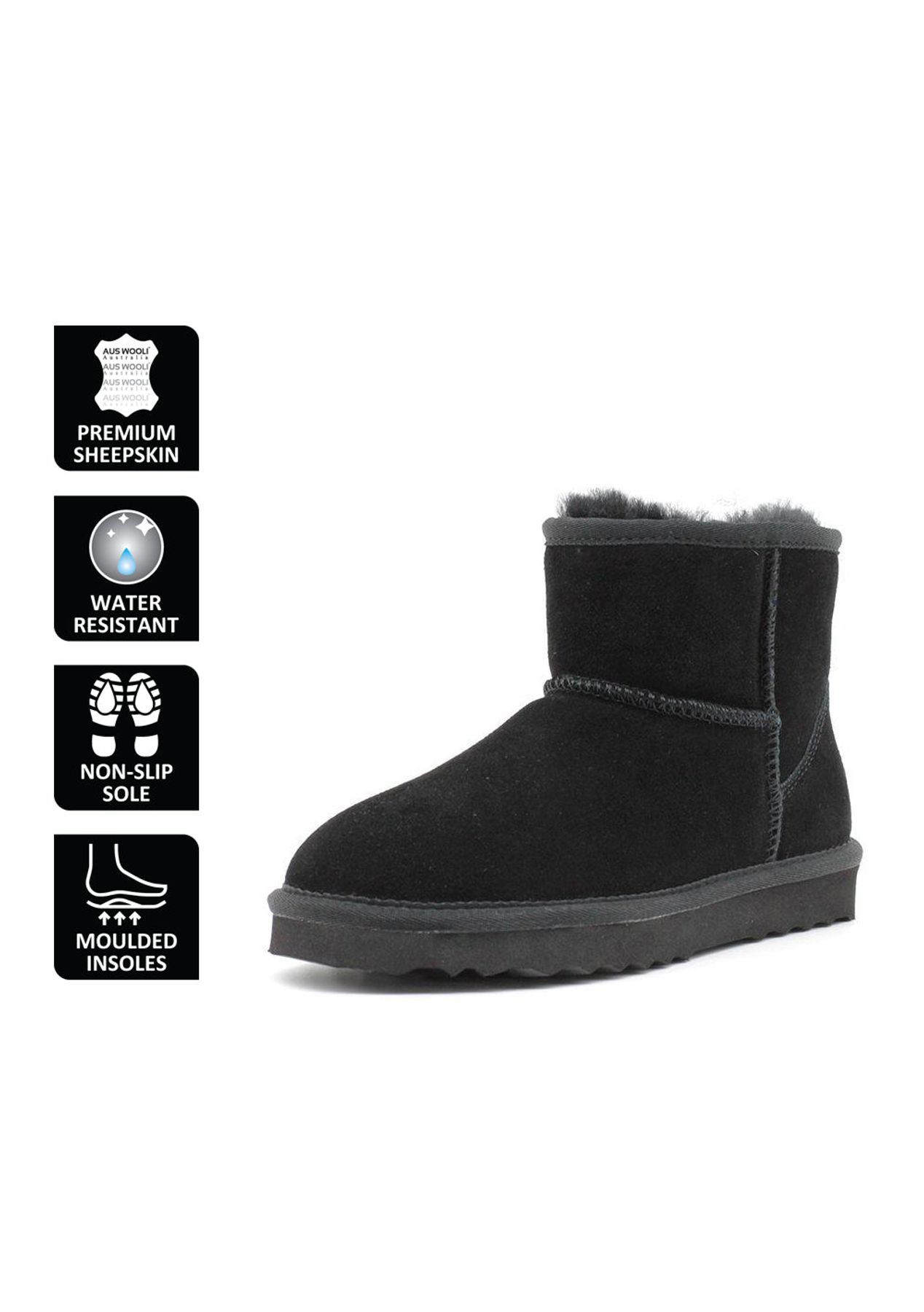 Aus Wooli - Ugg Short Sheepskin Ankle Boot - Black