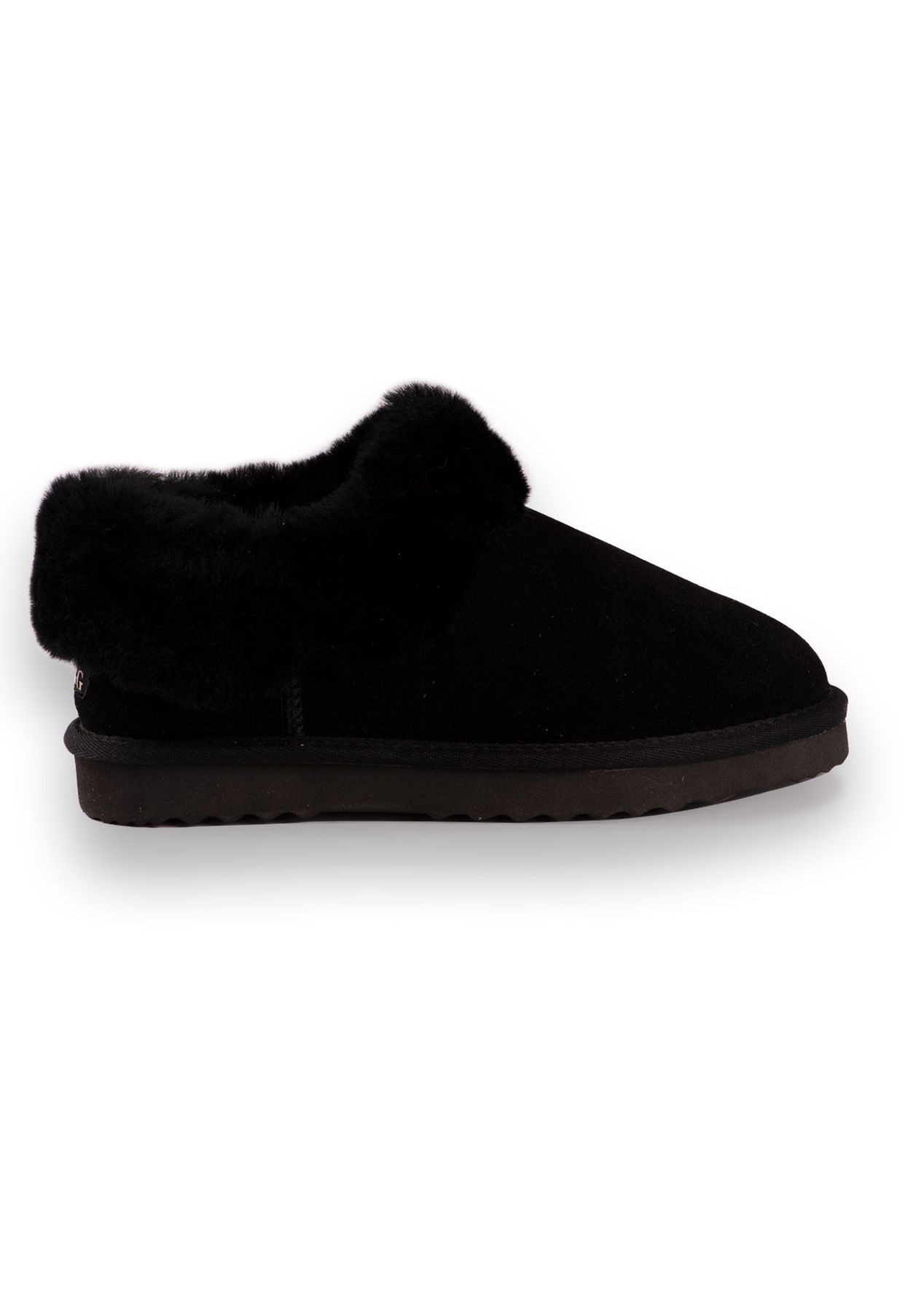 Aus Wooli - Ugg Unisex Sheepskin Wool Traditional Ankle Slippers - Black