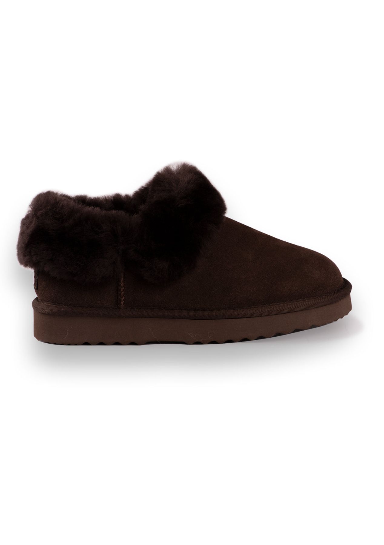 Aus Wooli - Ugg Unisex Sheepskin Wool Traditional Ankle Slippers - Chocolate