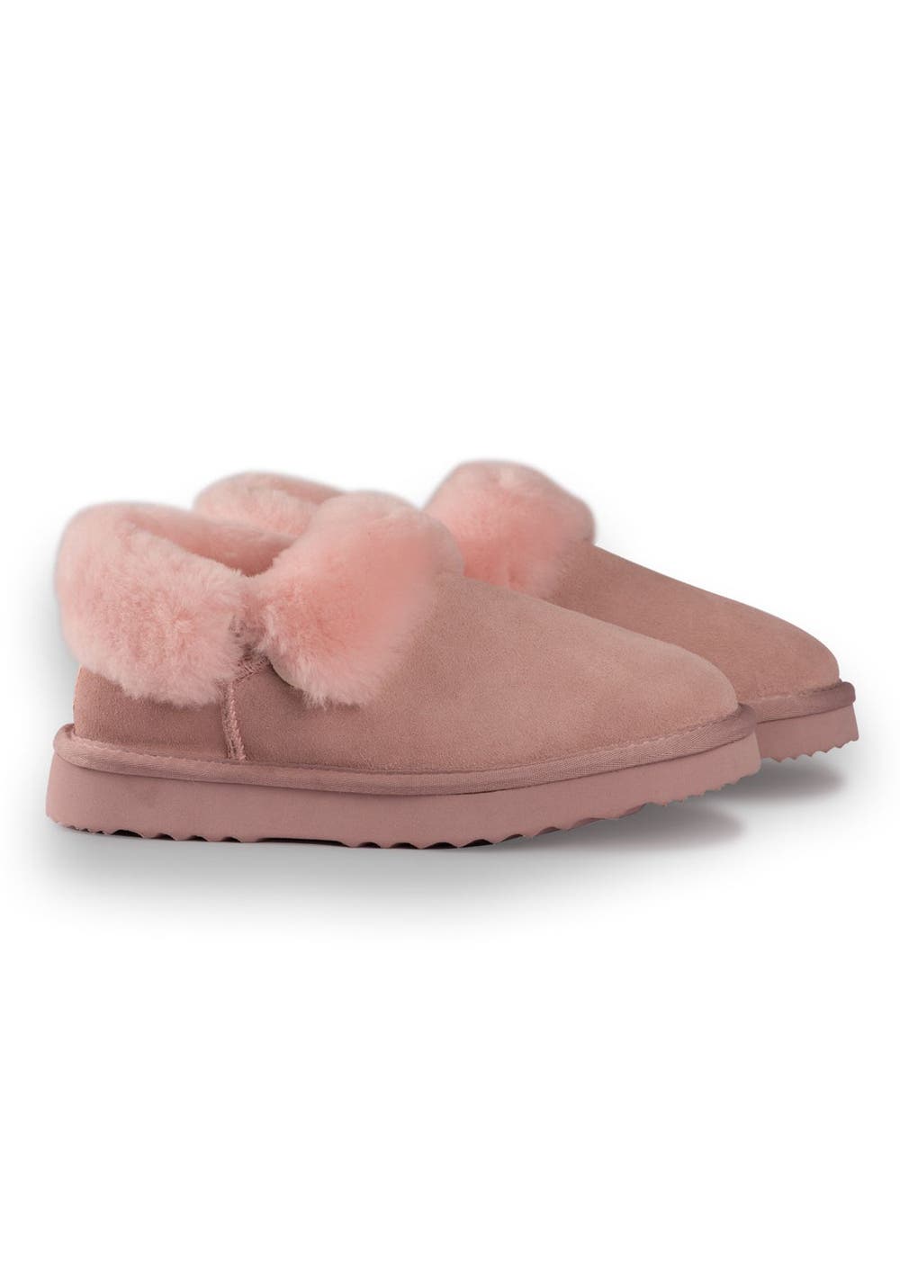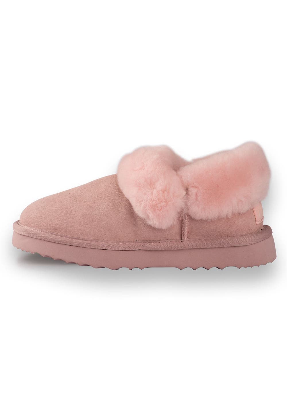 Aus Wooli - Ugg Unisex Sheepskin Wool Traditional Ankle Slippers - Palepink
