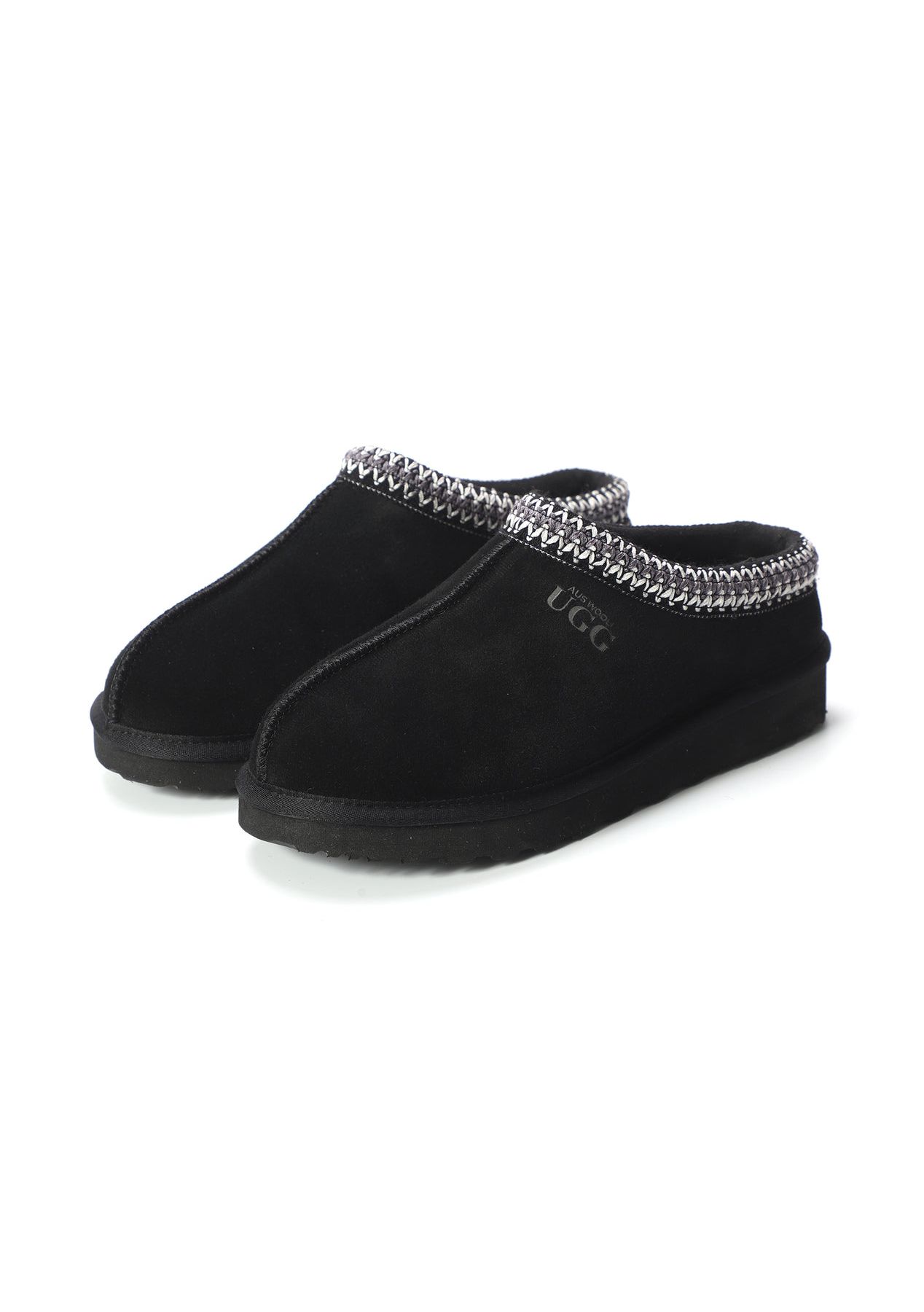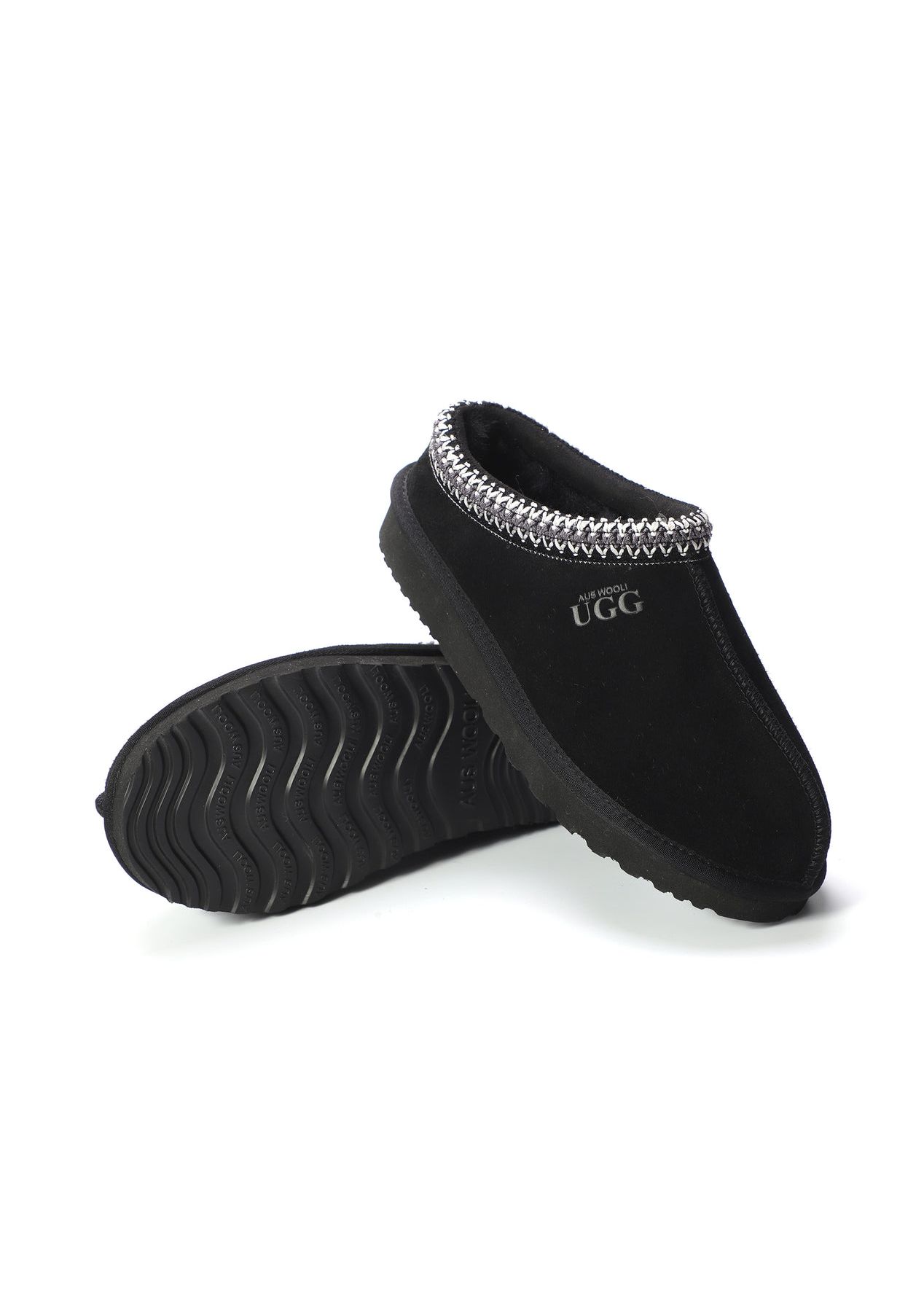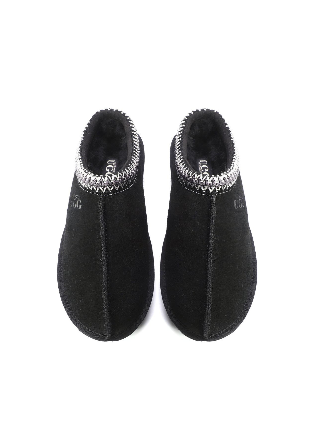 Aus Wooli - Ugg Sheepskin Wool Ankle Braid Croydon Slippers -Black