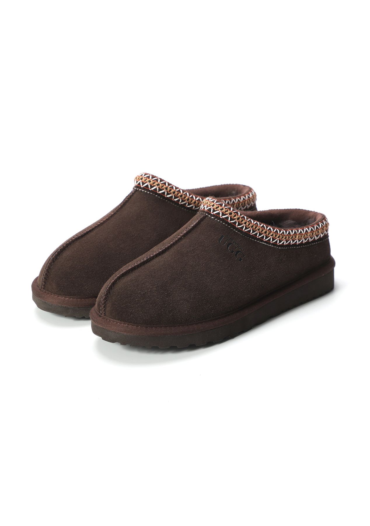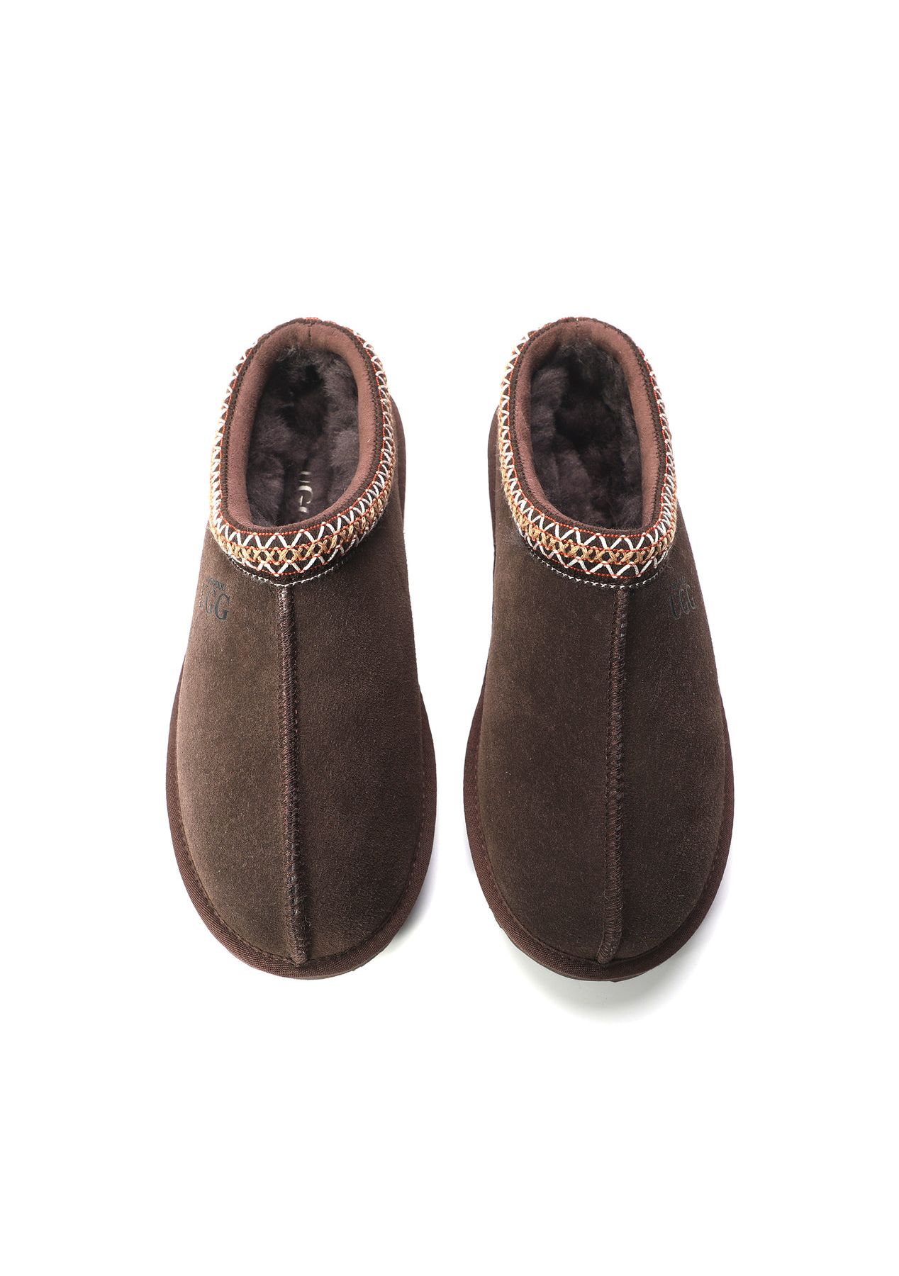 Aus Wooli - Ugg Sheepskin Wool Ankle Braid Croydon Slippers -Chocolate