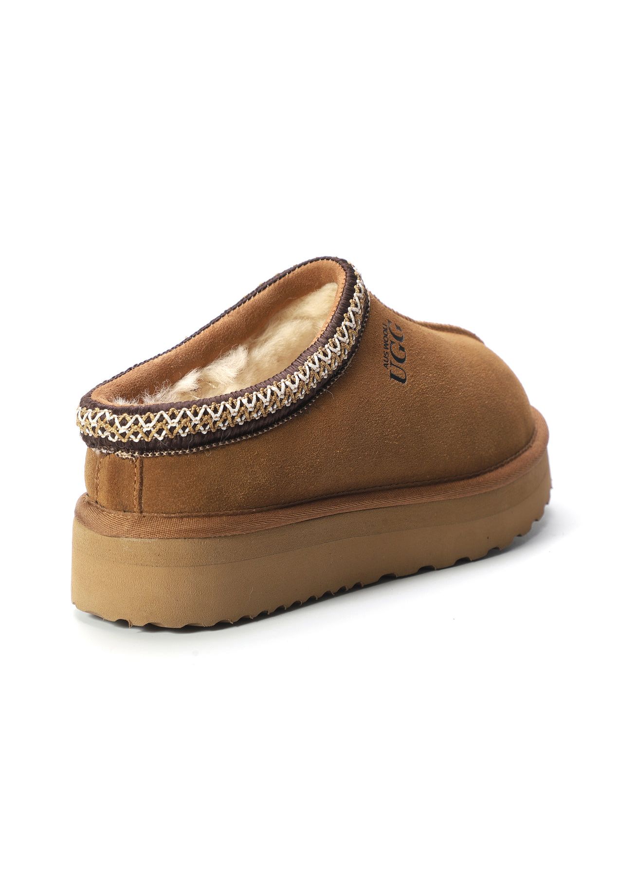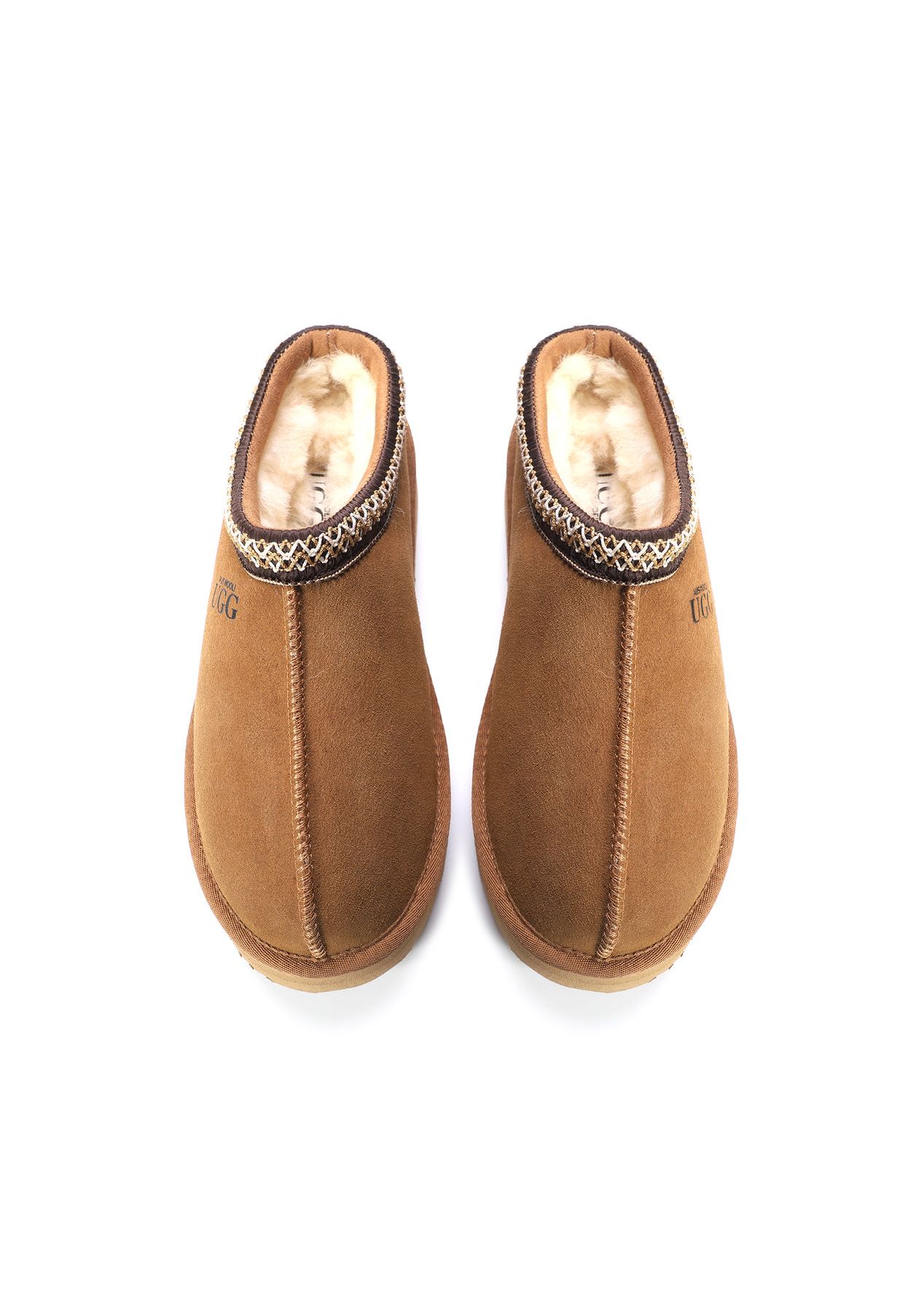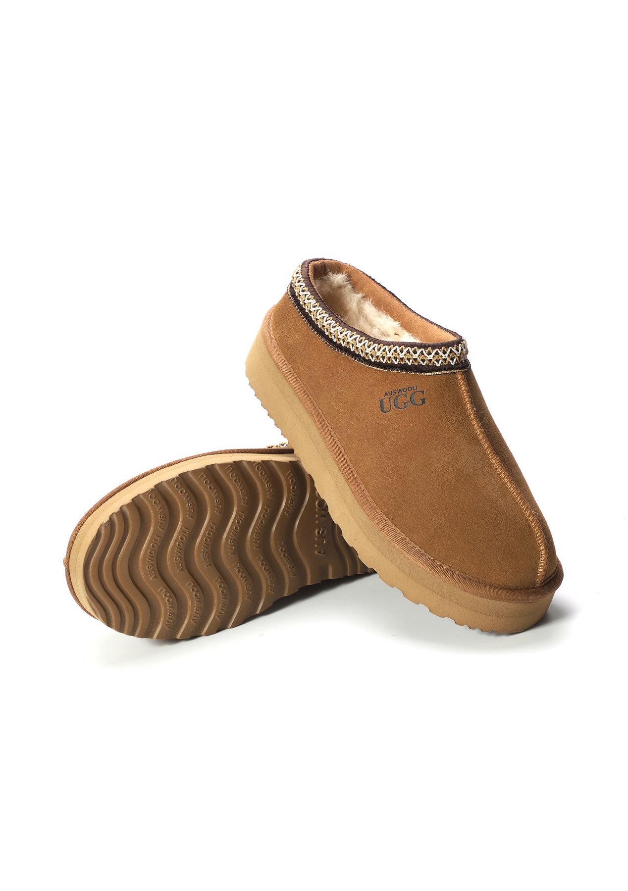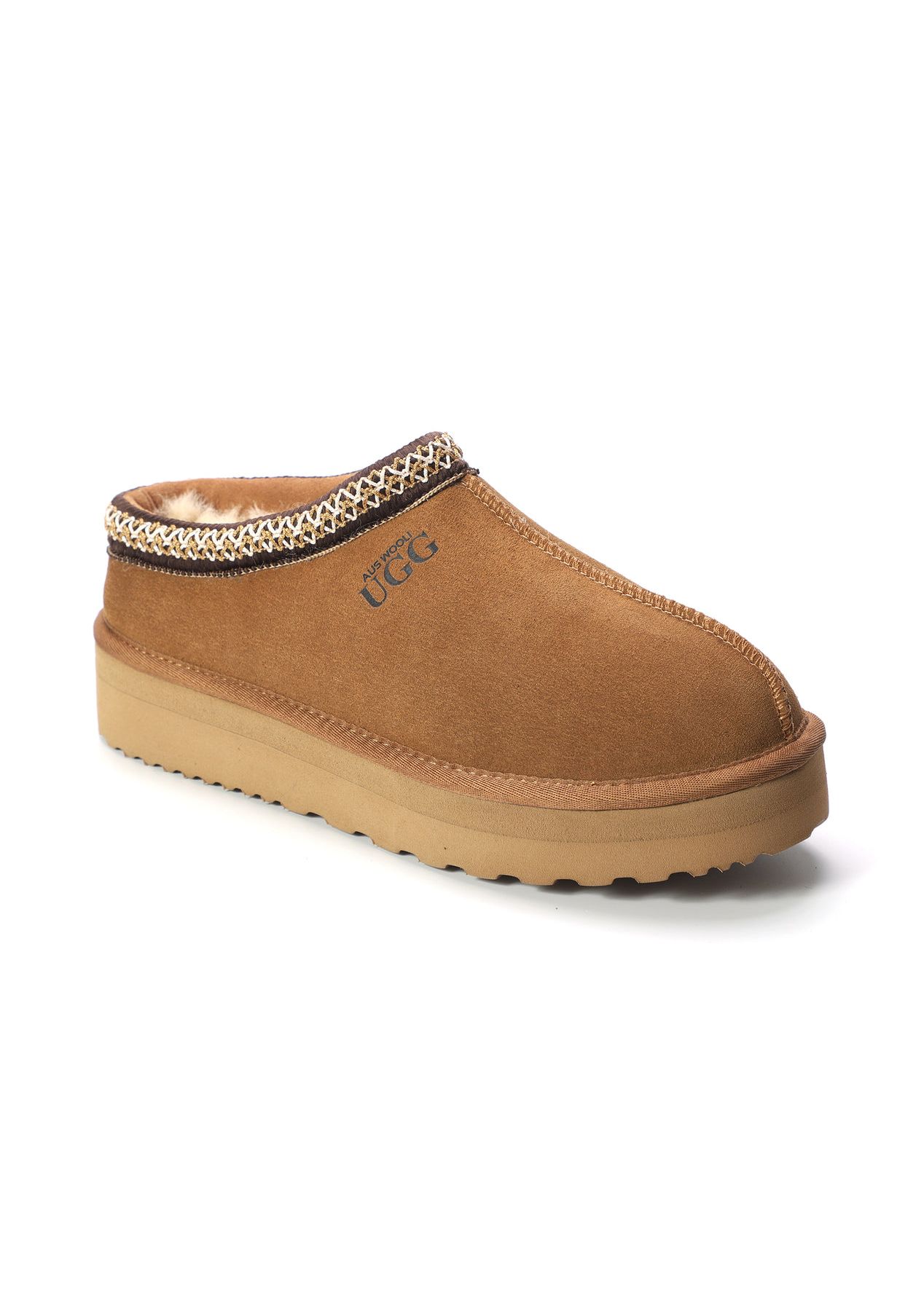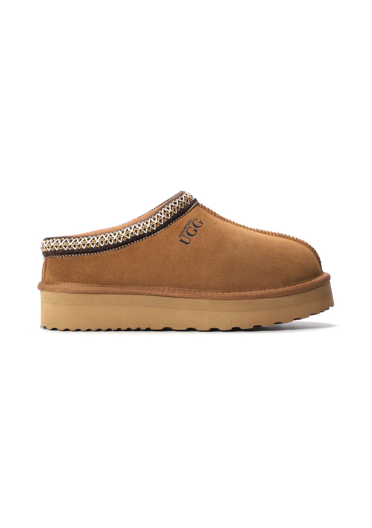 Aus Wooli - Ugg Sheepskin Wool Ankle Braid Platform Mentone Slippers -Tan