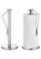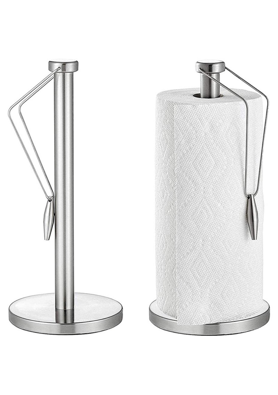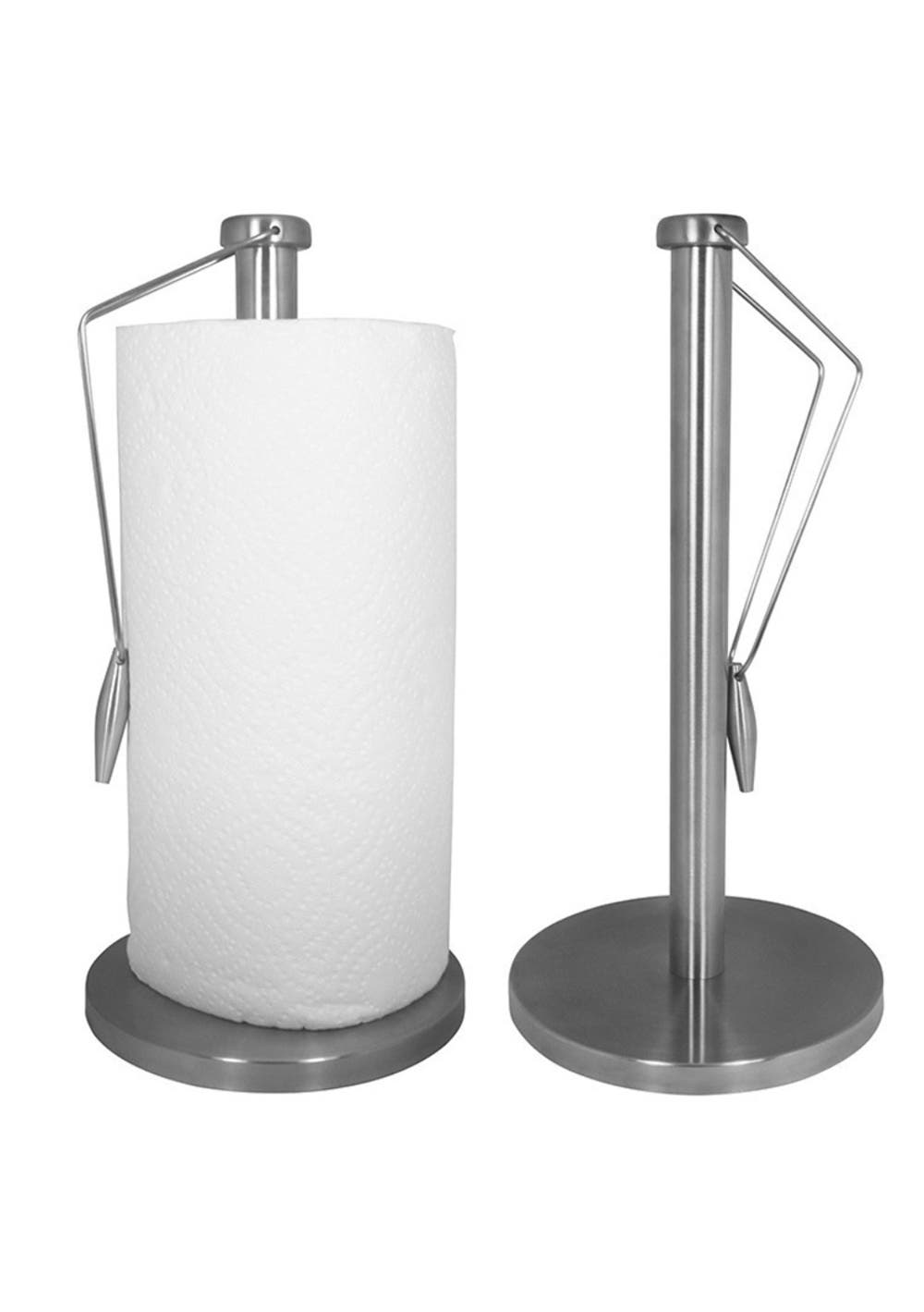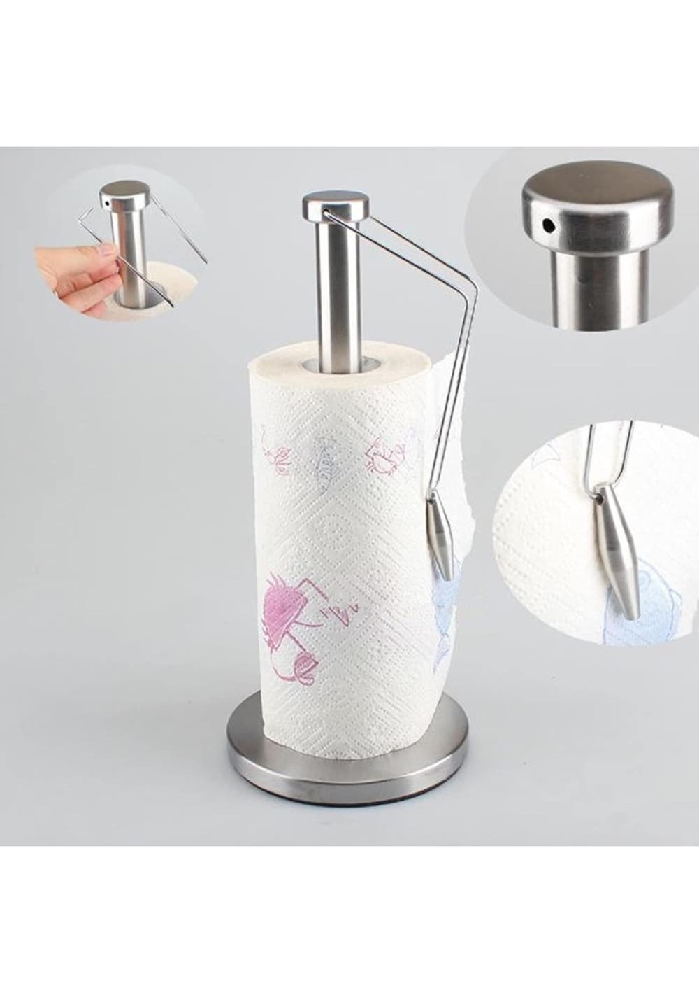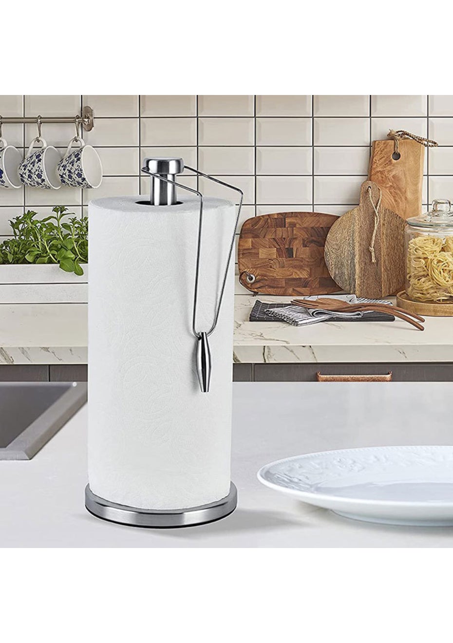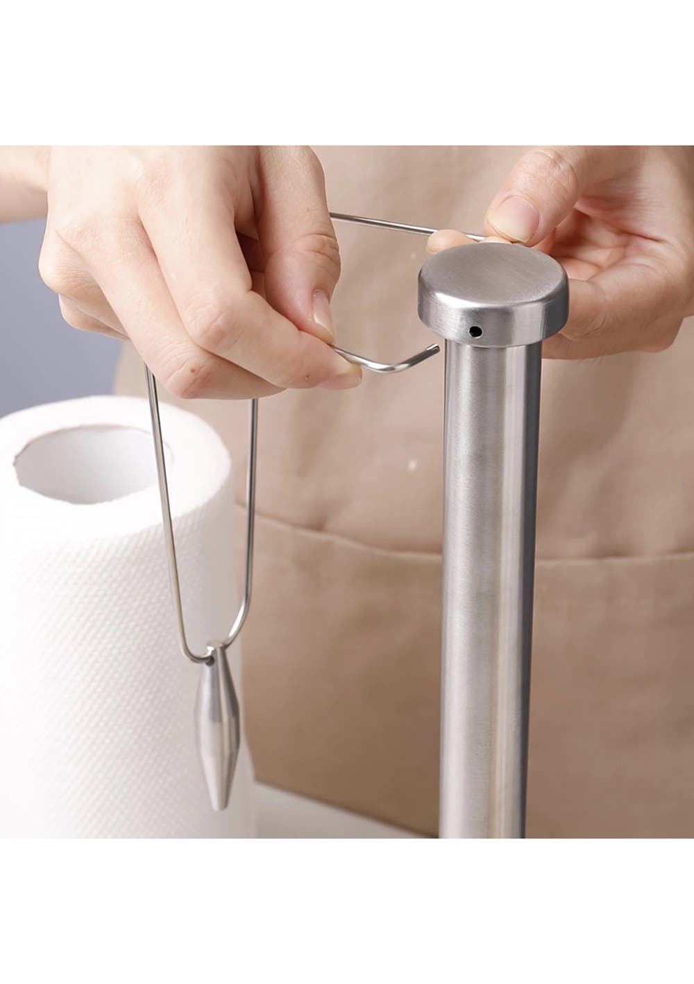 This stainless steel paper towel holder is designed for convenient one-handed use, offering a secure, stylish solution for dispensing kitchen paper towels.