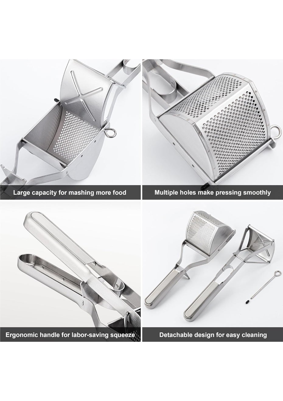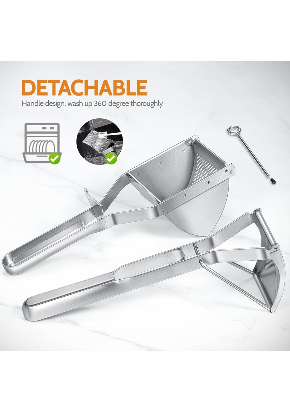 This heavy-duty stainless steel potato masher delivers consistent, lump-free results with minimal effort. Its ergonomic handle, large capacity basket, and detachable design make it perfect for home cooks and professionals alike.