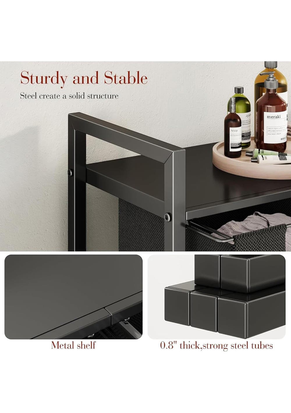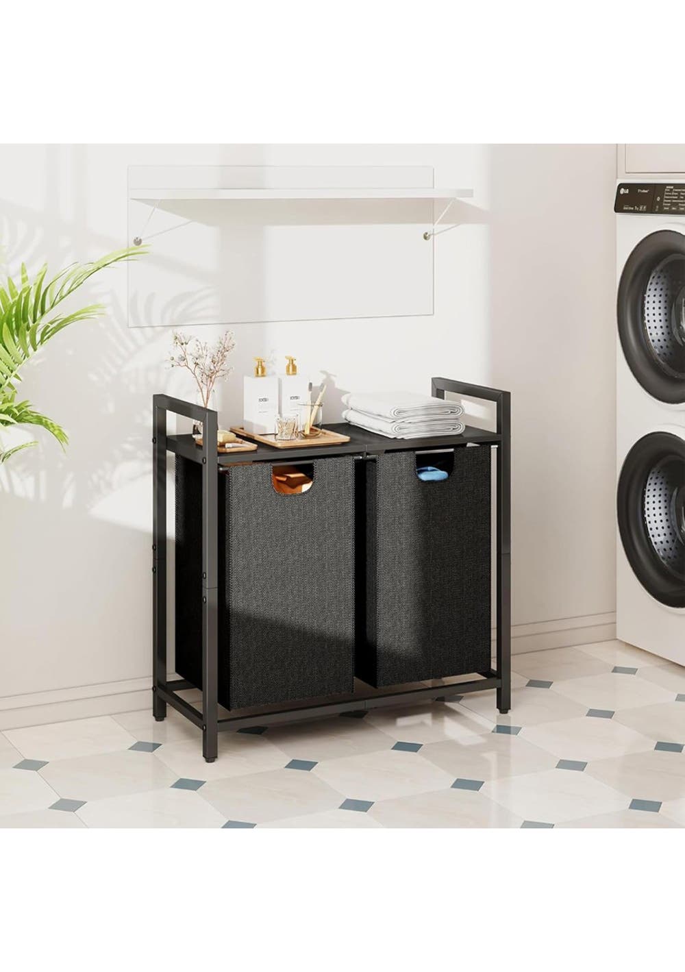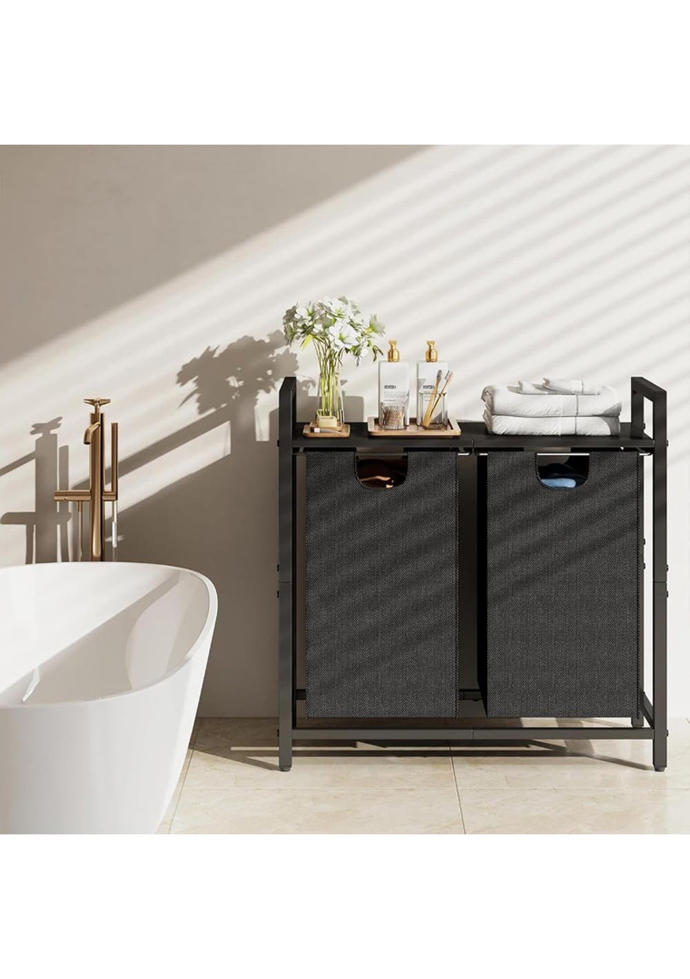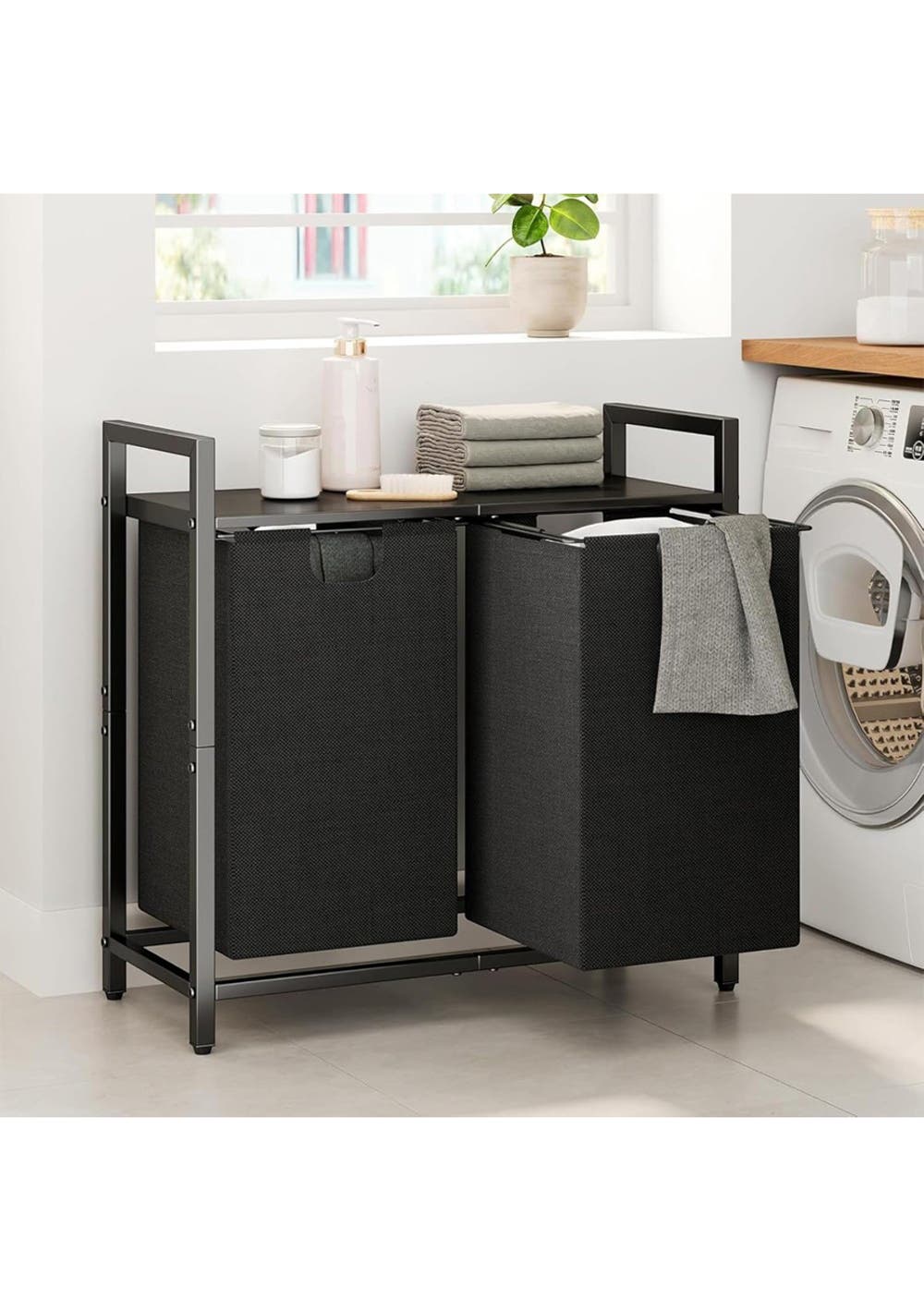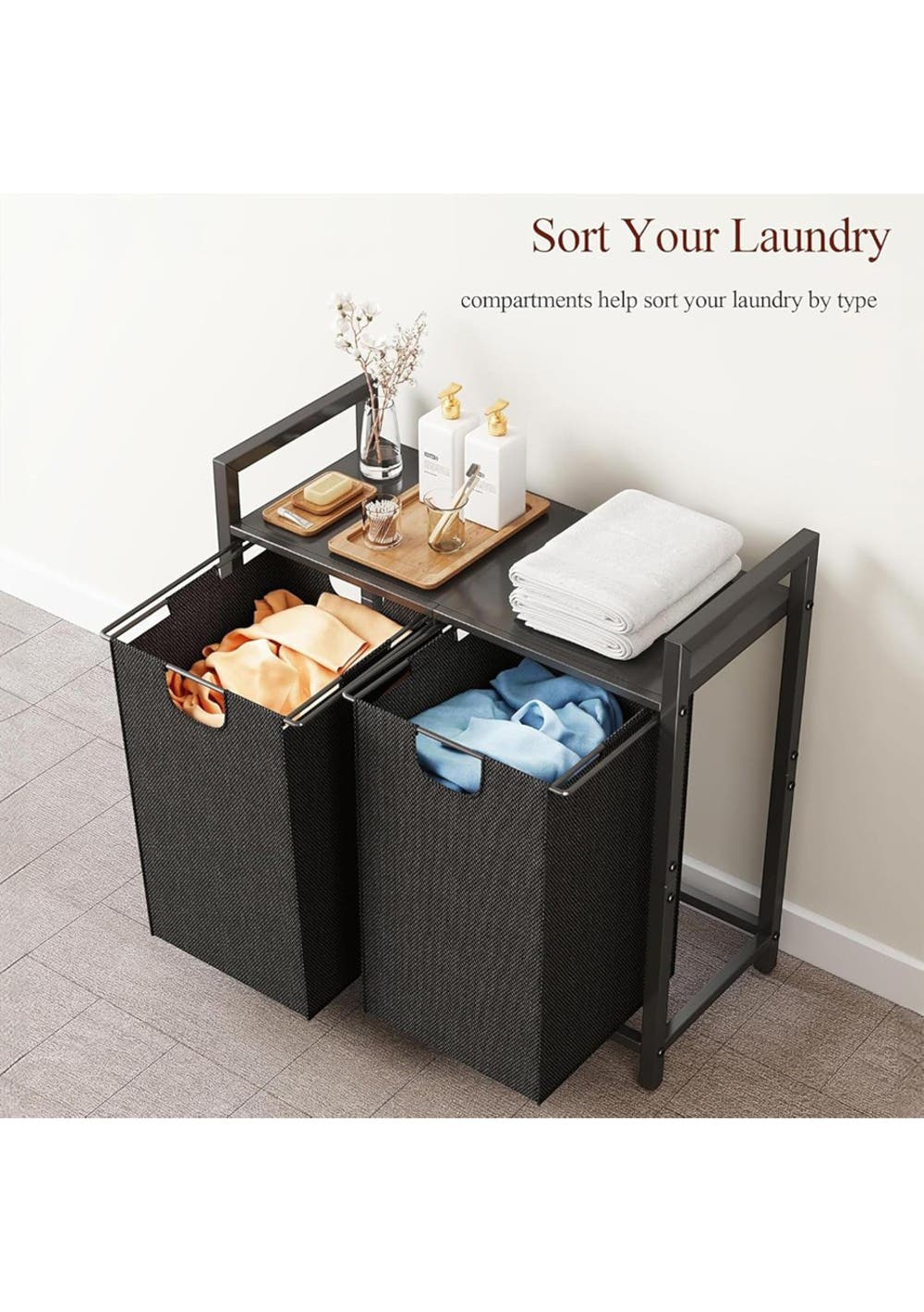 Dual Laundry Hamper with Pull-Out Bags & Steel Top Shelf – 72×32×71cm
