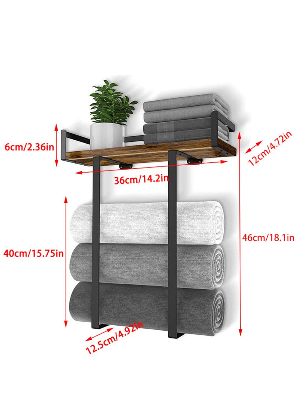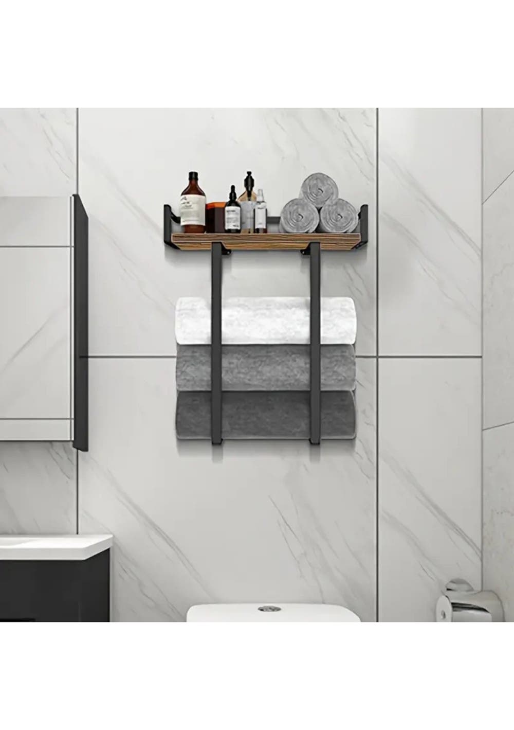 • 1 × Towel Rack with Wood Shelf