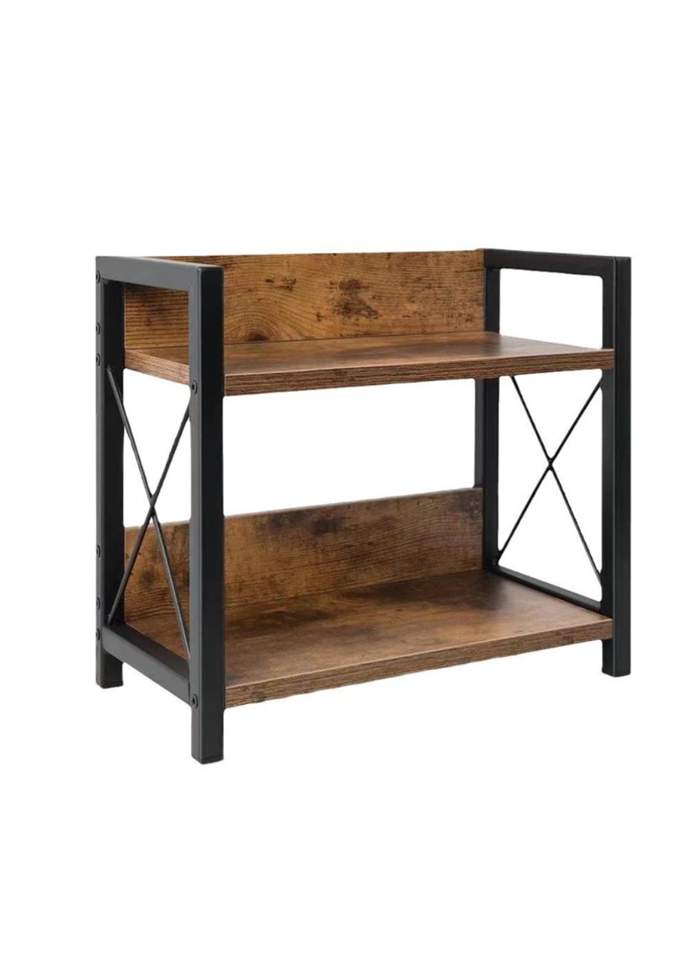 Rustic Industrial Storage Shelf – 2-Tier Wooden Metal Organizer Rack