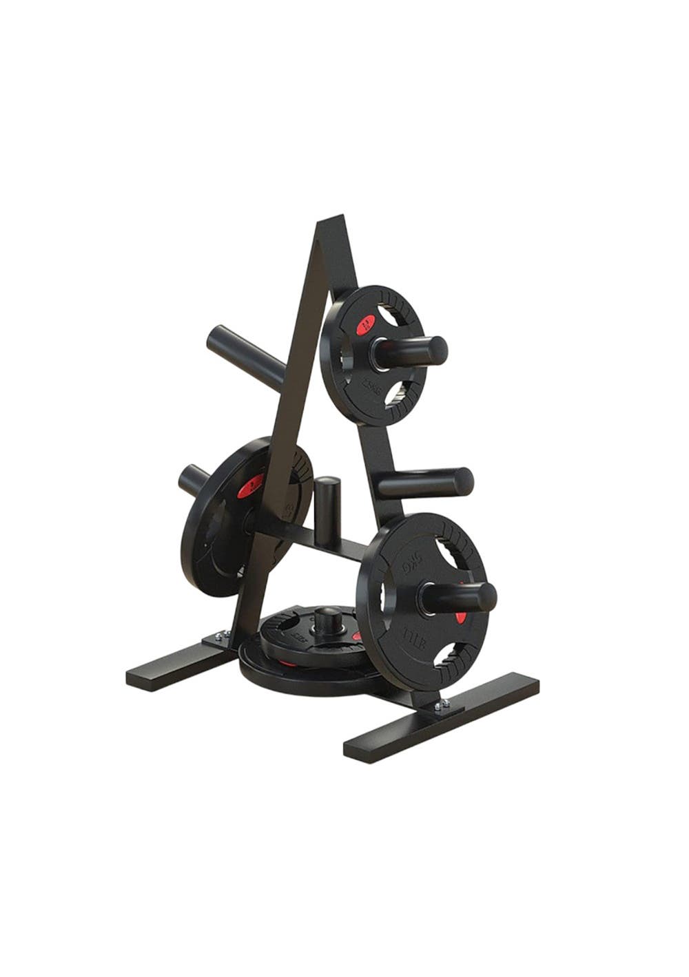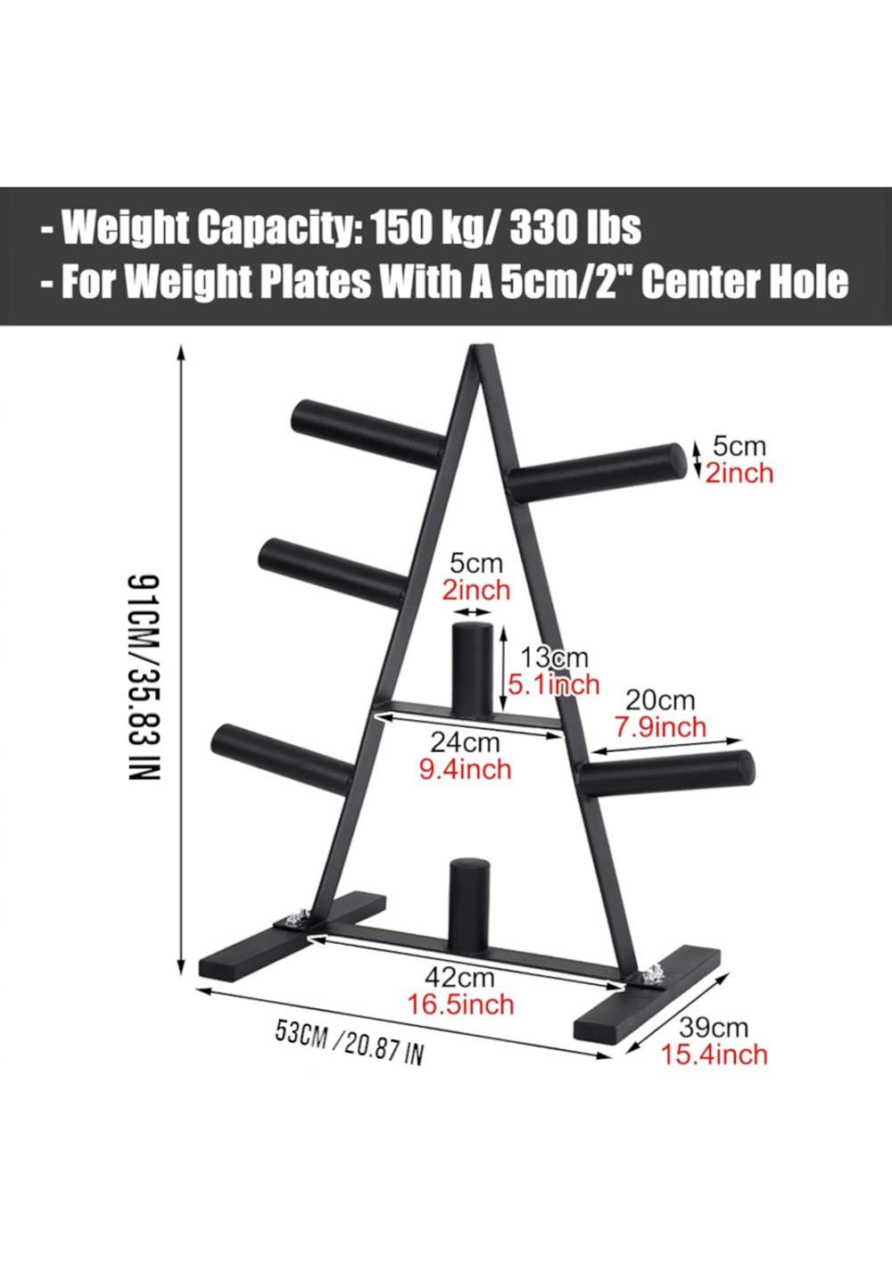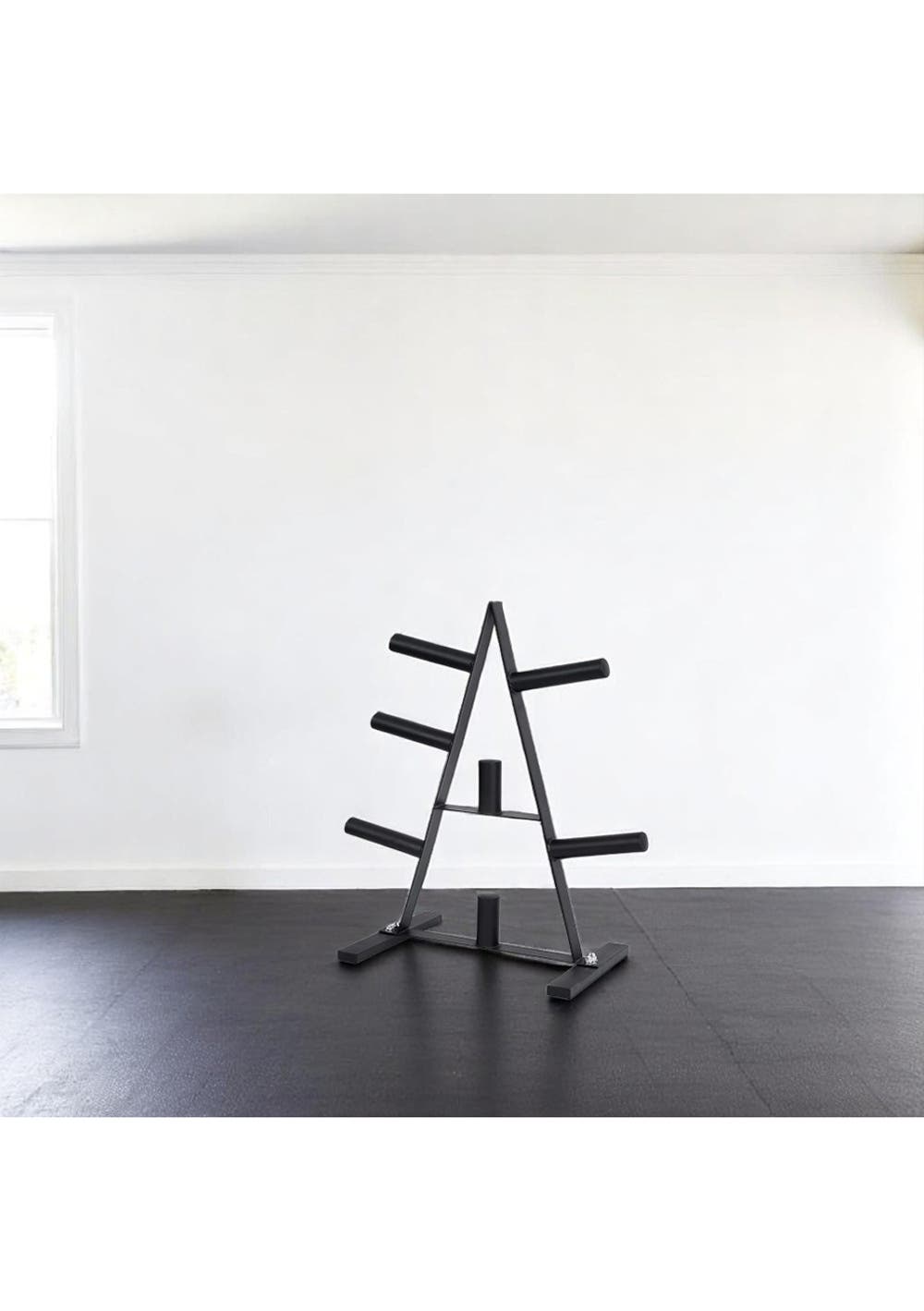 This Olympic weight plate rack is constructed from durable cast iron and supports up to 150 kg. Its compact, triangular structure holds multiple weights securely, reducing clutter in your workout space. Compatible with 2-inch center hole plates, it’s an ideal choice for home gyms and fitness studios.