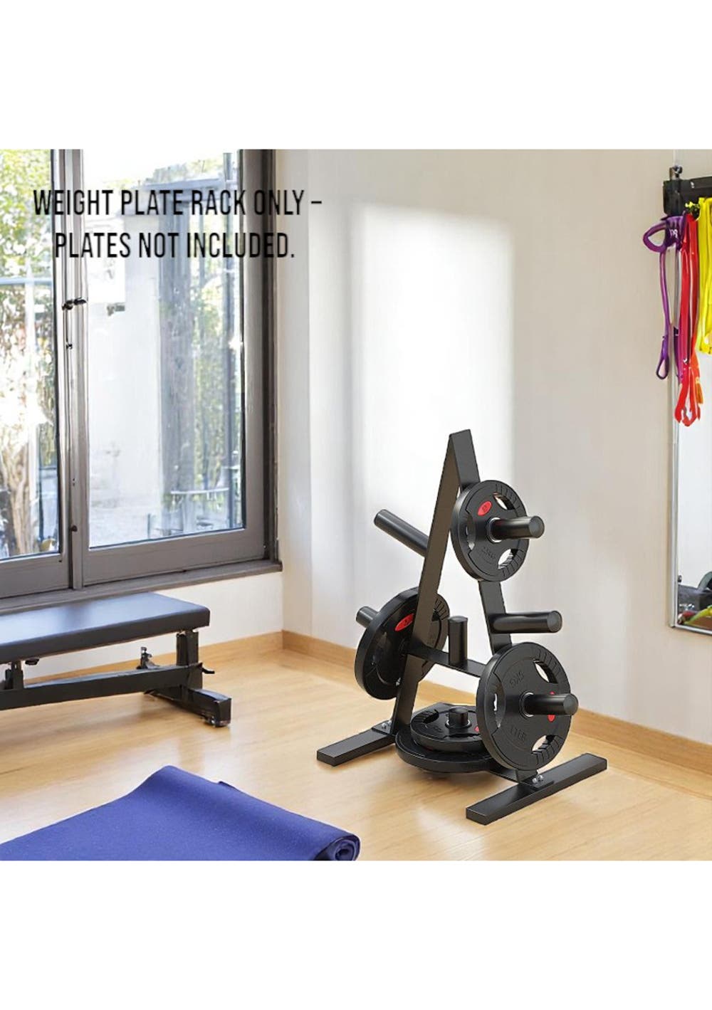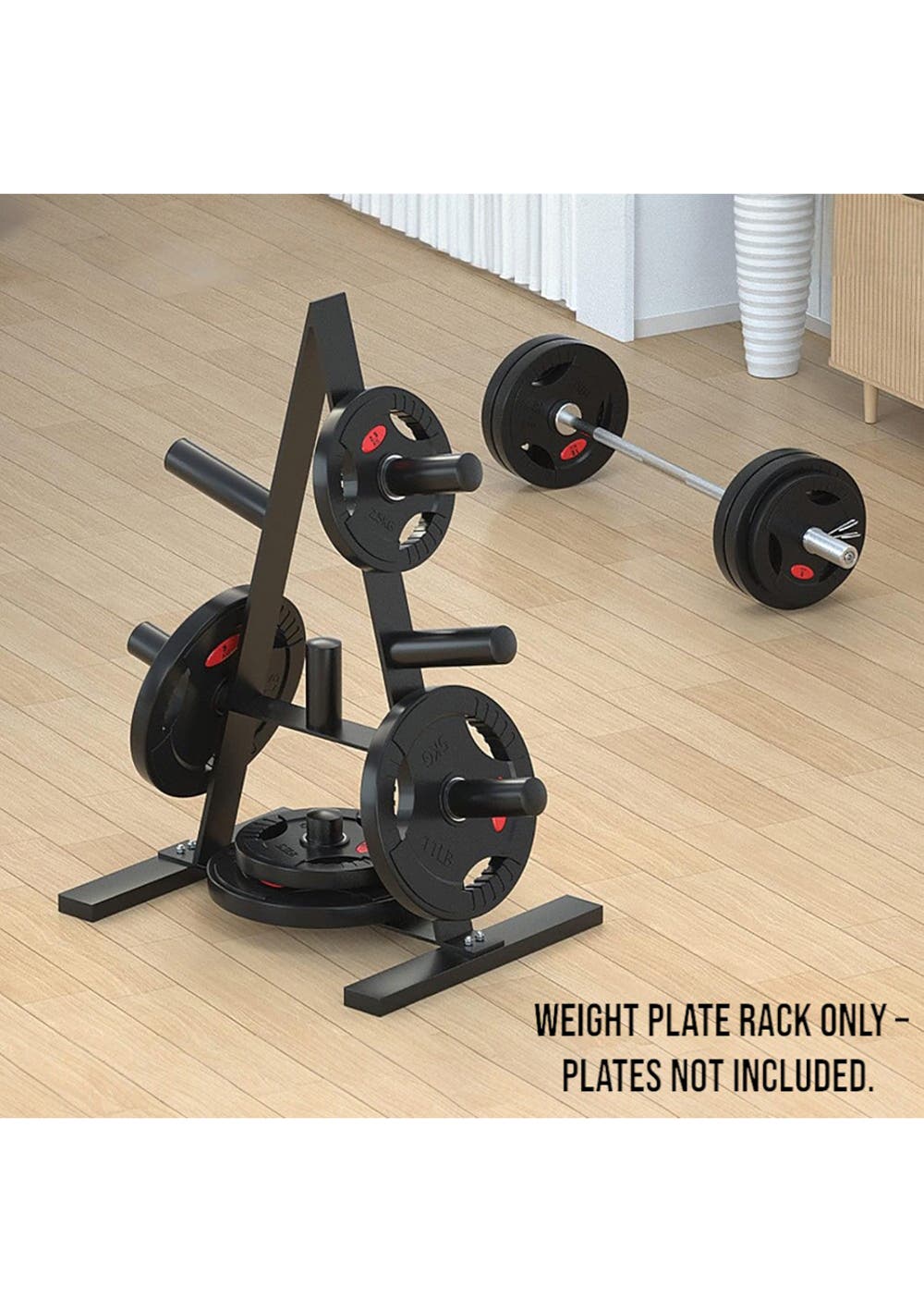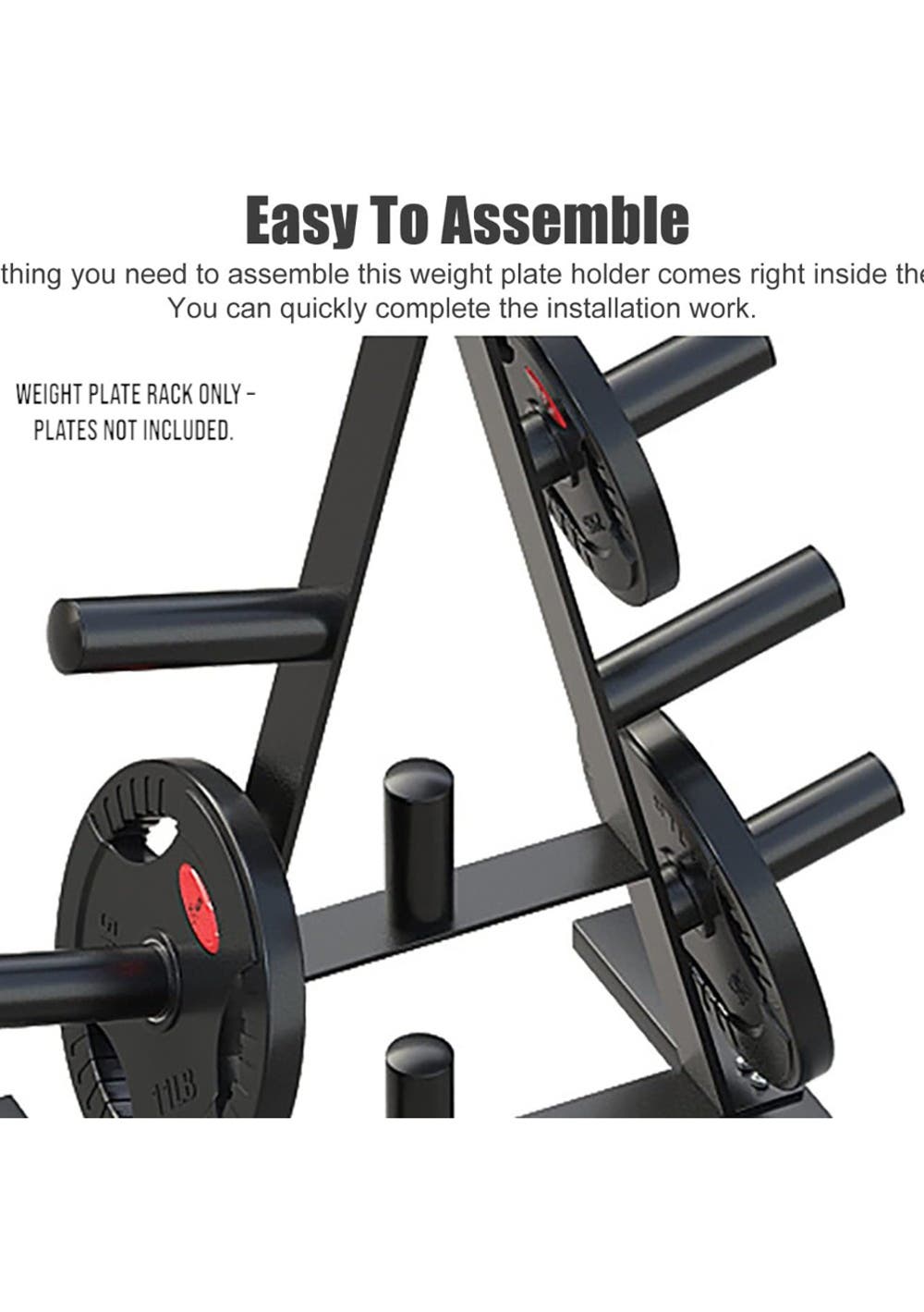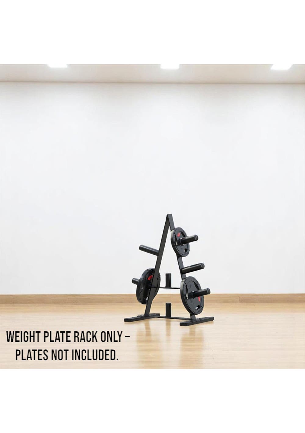 This Olympic weight plate rack is constructed from durable cast iron and supports up to 150 kg. Its compact, triangular structure holds multiple weights securely, reducing clutter in your workout space. Compatible with 2-inch center hole plates, it’s an ideal choice for home gyms and fitness studios.