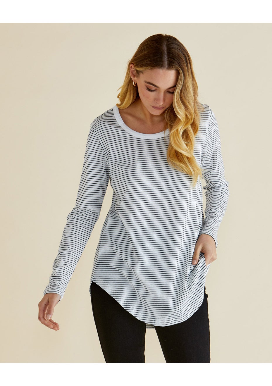Betty Basics - Megan Long Sleeve Top - White / Black Stripe