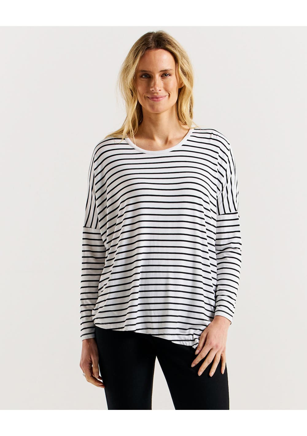 Betty Basics - Clemont Asymmetrical Bamboo Top - Mono Stripe