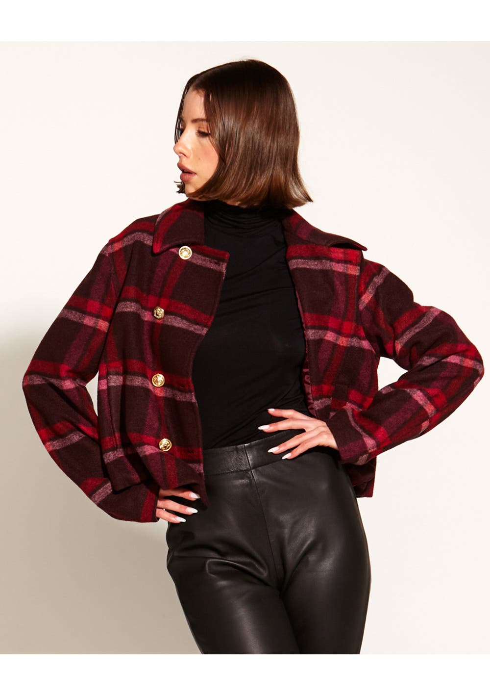 Fate - Choose You Cropped Military Jacket - Pink Red Check
