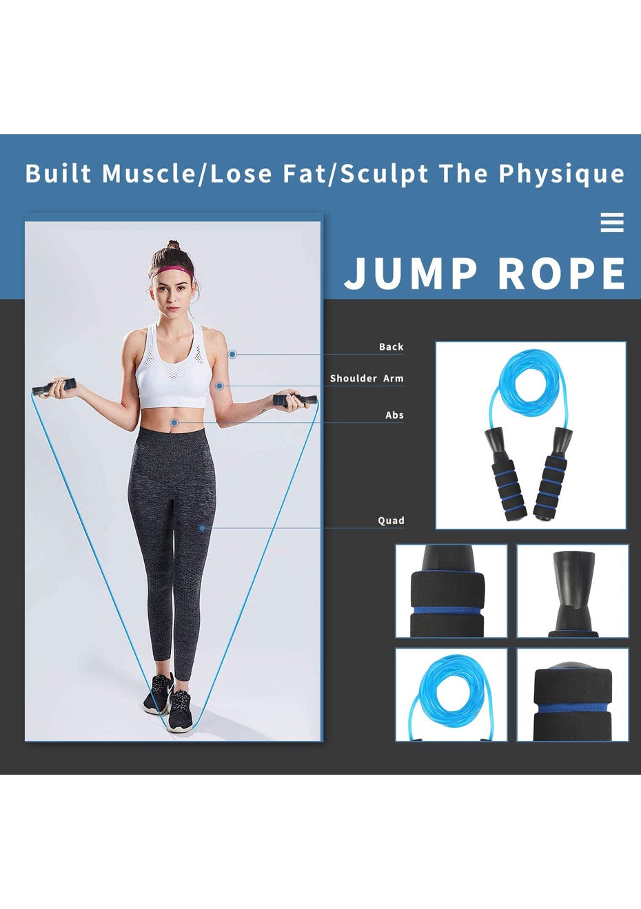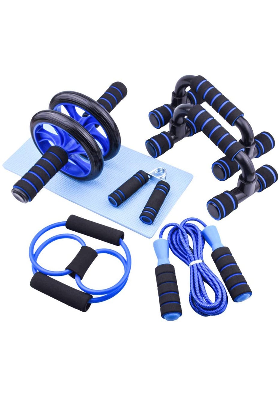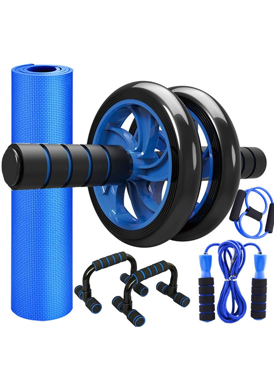 The kit comes with Ab roller, resistance bands, Push Up Bars, hand grip exerciser and jumping rope.