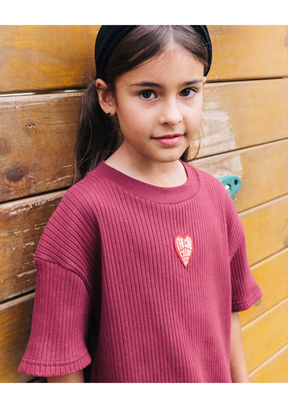 Our Dark plum rib crop tee, paired with the matching shorts is everything you need in a summer outfit. This girls tee has been cut to a cropped length so that it hits the top of your shorts or skirt at the perfect length. Made from soft wide lycra rib cotton, this tee has been made true to size with a relaxed fit. Model is age 10 and is wearing size 10. DETAILS + CARE Colour: Dark Plum Fabric: 280gsm lycra rib cotton Designed in New Zealand Cool rubber patch print by The Girl Club team Ethically made by our friends at a factory in Tamil Nadu, India where the tee is woven, knitted, dyed, cut, printed and sewn using high grade cotton. For best results wash on a cold gentle cycle with similar colours and dry in the shade.