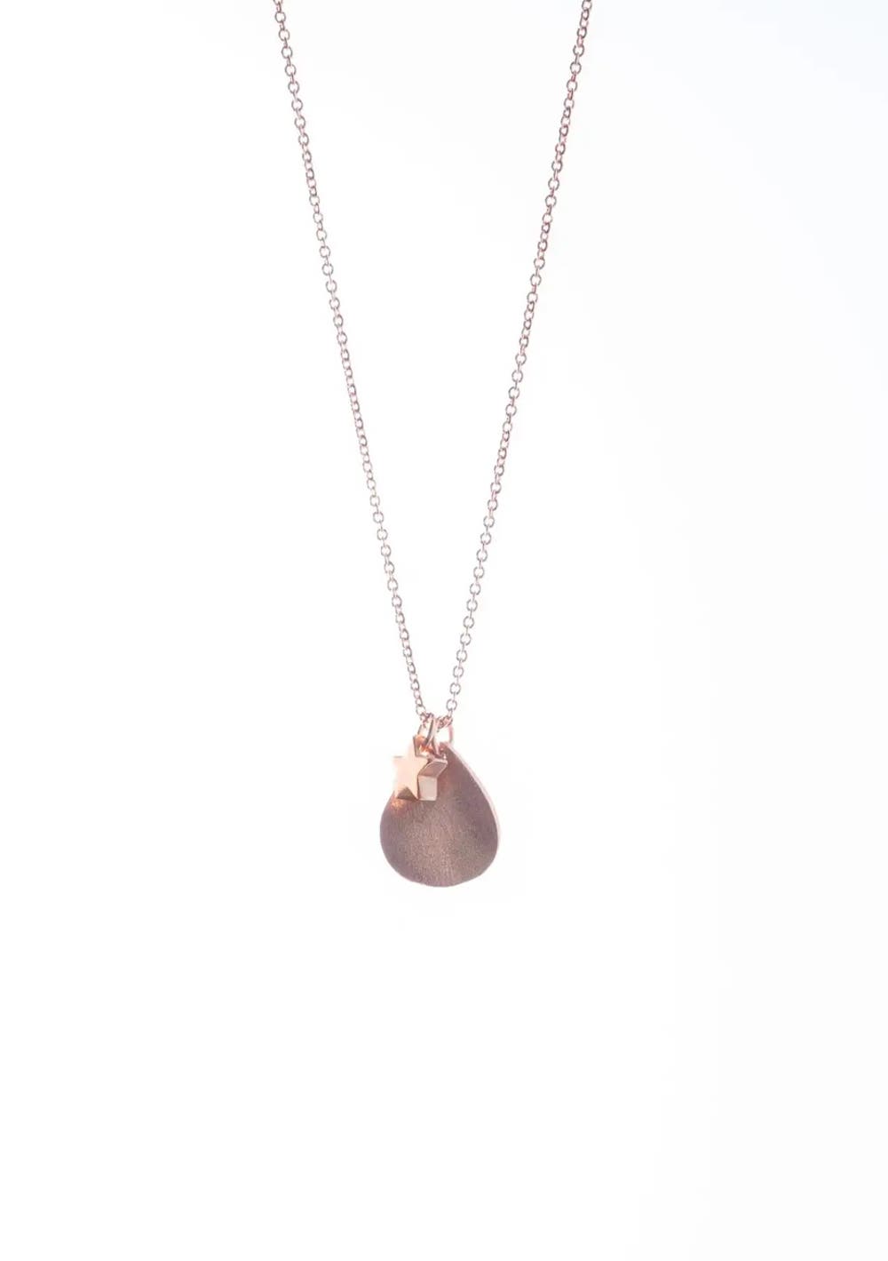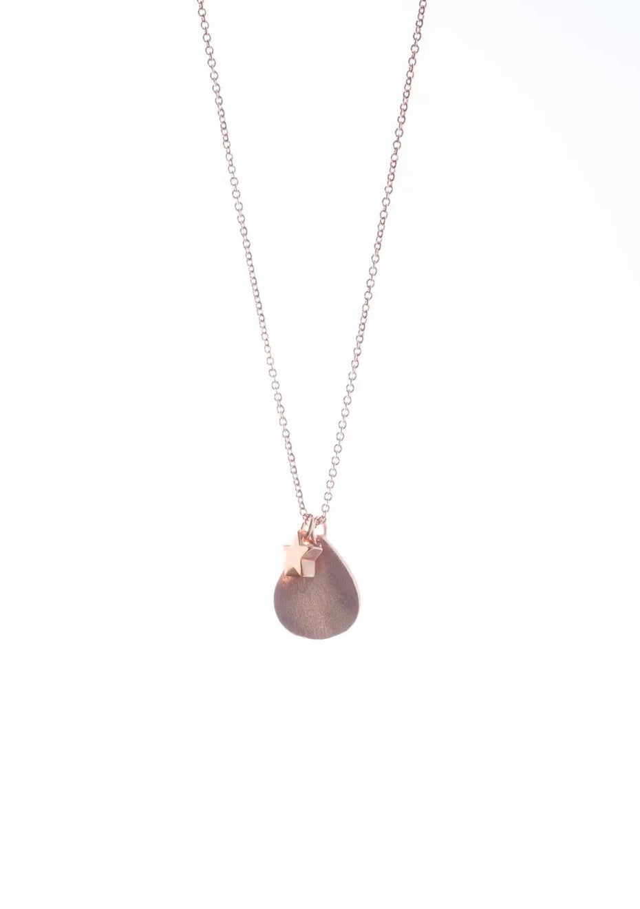 Rose gold plated fine chain necklace with small star and tear drop pendants