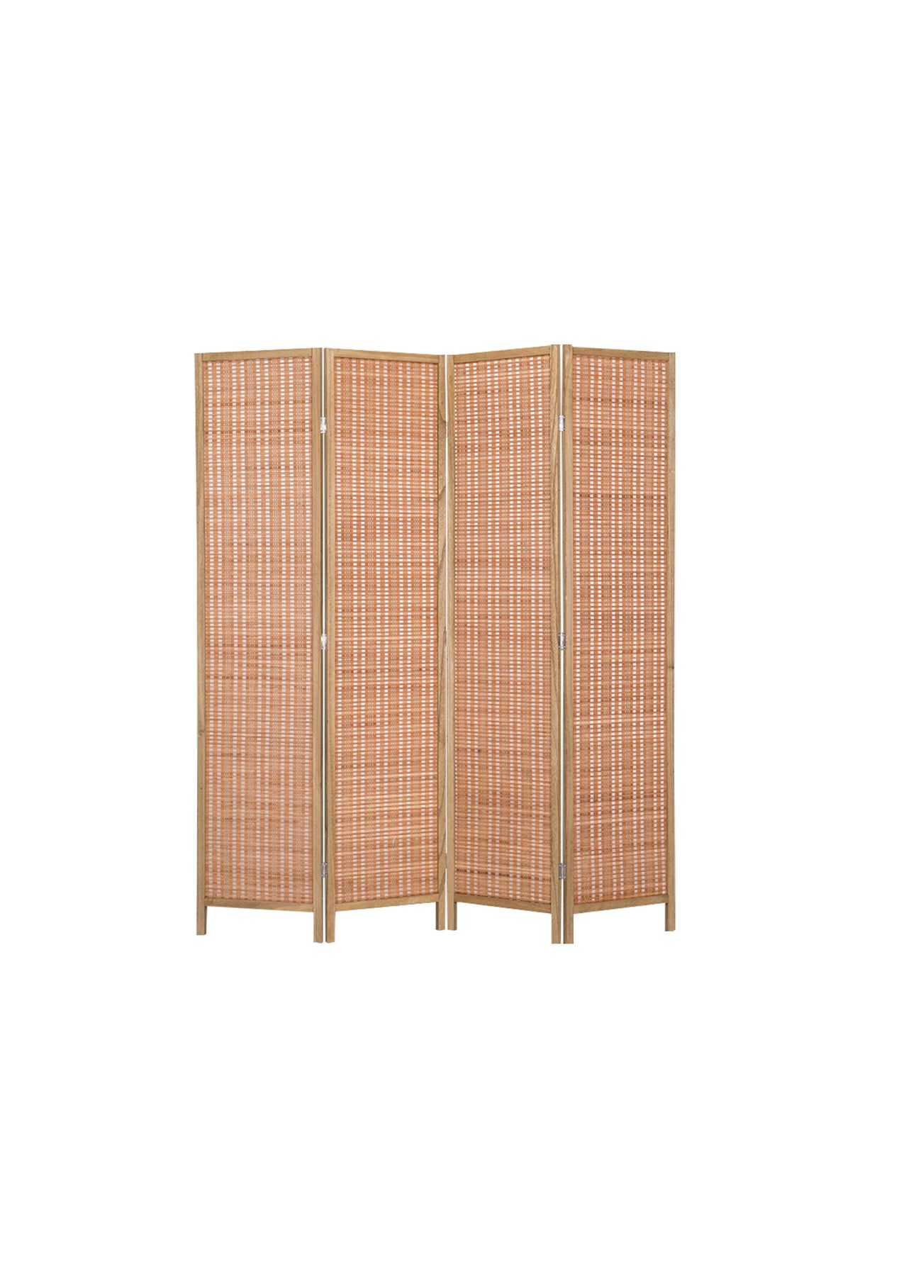 PR72136 Need some privacy? Or more practical use of space in your home? Consider using our room divider to create private pockets, simply dividing a large room into separate areas to create new focus points. Designed with a touch of oriental flair, our 4 panel room dividers look good from any angle. The paulownia wood construction is strong and sturdy to stand up to the task and easily maneuvered to anywhere that needs it. The screen itself is made of bamboo, when not in use, the room divider can be folded and stored away for its next use. So start creating some layered space with our durable room dividers and give your home a whole new dimension to it.Product Features: Brand NewPaulownia wood constructionNatural materialPractical screen and room dividerEco-friendlyFordable panelsFlexibleSpecifications:Material: Paulownia wood + bambooColor: BrownDimension of each panel: W400xH1700xD18 mmPanel: 4Package Contents1pc/cartonPackaging Size: 460x1765x120 mm