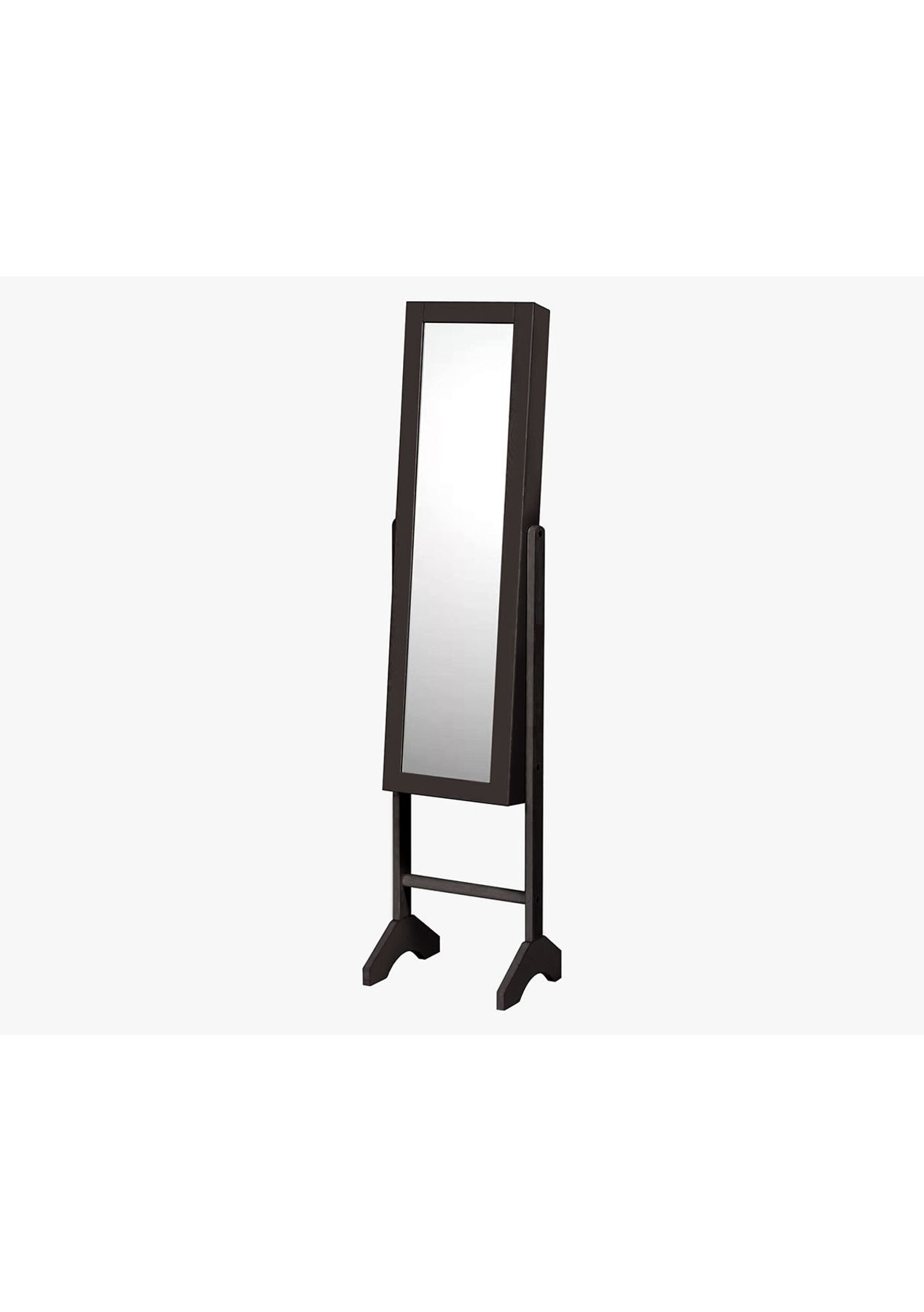 PR8445 Floor stand Jewelry Cabinet JC712 BlackThis elegant floor standing mirror with new interior look is crafted beautifully in MDF frame and finished in paint. With adjustable axis rotation, it serves you from different angles. Multifunctional unit combines jewelry organizer, cosmetic storage and with full length dressing mirror. It is a graceful addition to the room. Surely you will be pleased with this innovative mirror.* Overall size: 352*335*1530mm* Cabinet body dim: 315*77*1100mm* Material: MDF. * Finish: Painting* Color: Black