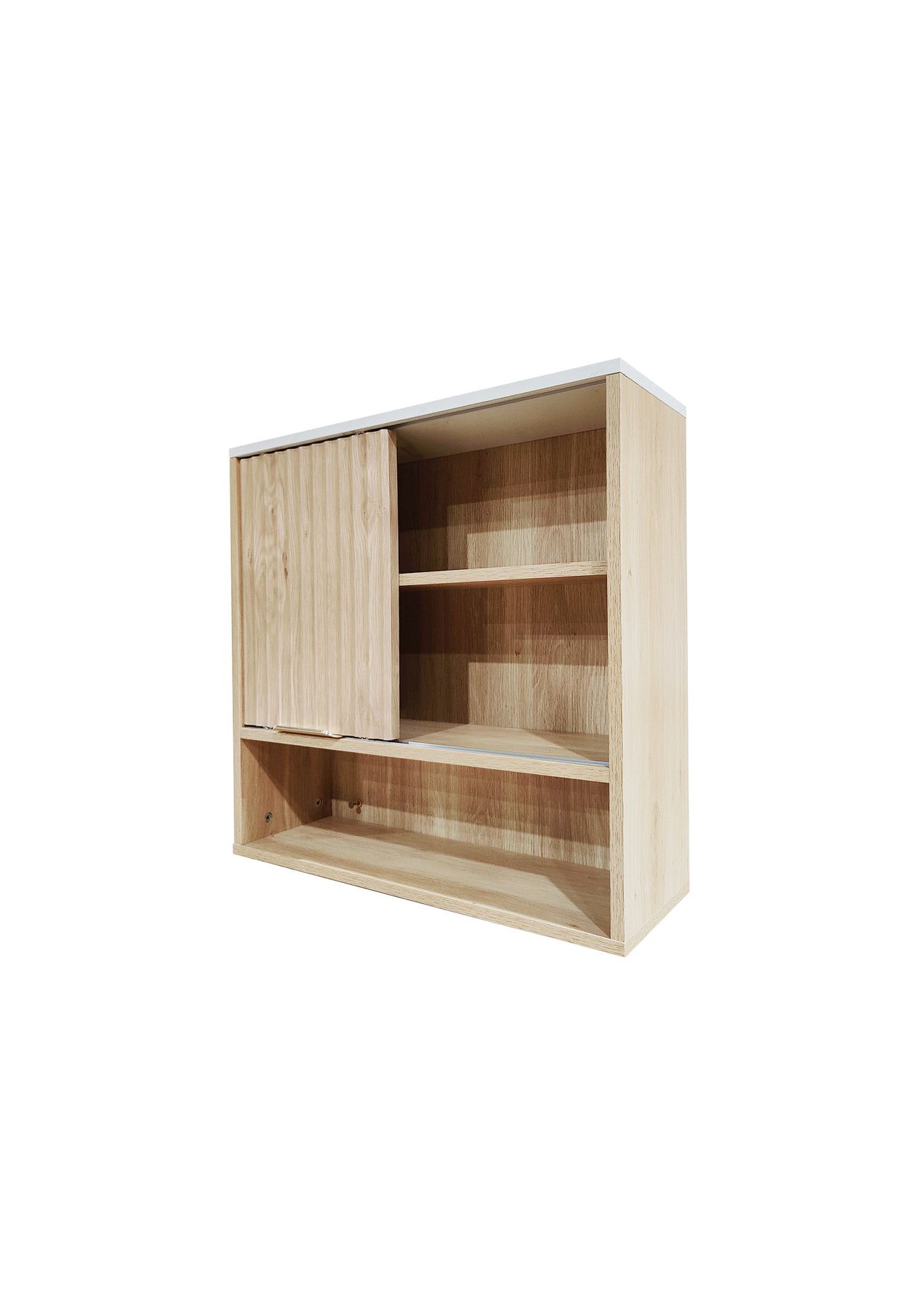 PR72043 - Wall cabinet Our Wall storage cabinet is made of eco-friendly MDF that is odorless and has low environment burden. When you have limited space to use, this wall cabinet is the ideal solution to have to utilize your bathroom. Make sure you have the storage for every little thing you have to get yourself ready for the day! This stylish of furniture is a great style choice for your bathroom.So start organizing your home and your lifestyle with our simple and extremely functional wall cabinet!Features:Contemporary and stylishPerfect for bathroomSpace-saving designSliding door designFaux marble topWaveform fluted panel design Three shelfEasy assemblySpecifications:Material: MDFColor: Natural oakDimension:H61*W59*D19.3 CMPackage Contents:Wall Cabinet x1Instruction Manual x1
