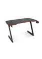 PR9281 Gaming Table KZ 140cm Designed for avid gamers, this gaming table is both stylish and practical. To make your gaming experience more convenient, this gaming table has a spacious and sturdy surface, which means you have enough room to keep your gaming PC, monitor, keyboard, mouse, and other essentials. For ultimate durability and sturdiness, the gaming table features a powder-coated solid steel frame and 15mm thickness. It has 90kg weight holding capacity. Furthermore, the table features sleek, z-shaped legs, which ensures ultimate stability and prevents shaking. It also has an adjustable foot pad for better support. For ease of use and additional convenience, this gaming table boasts a carbon fibre texture that makes it waterproof, non-slip, and easy to clean. With so much that it has to offer, bring home this gaming table to take your gaming session to the next level.FeaturesSolid steel frameWide table surfaceHeadphone hookCup holderZ-shaped legsPractical designCarbon fibre textureWaterproof, non-slip, and easy to cleanEasy assemblySpecificationsFrame material: Powder-coated steelTable material: P2 melamineThickness: 15mmWeight capacity: 90-100kgOverall dimensions: 140 x 60 x 73cmColour: BlackPackage Content1 x Gaming Table KZ 140cm1 x Assembly Manual Package Dimensions: 142cmx65xcmx7cm