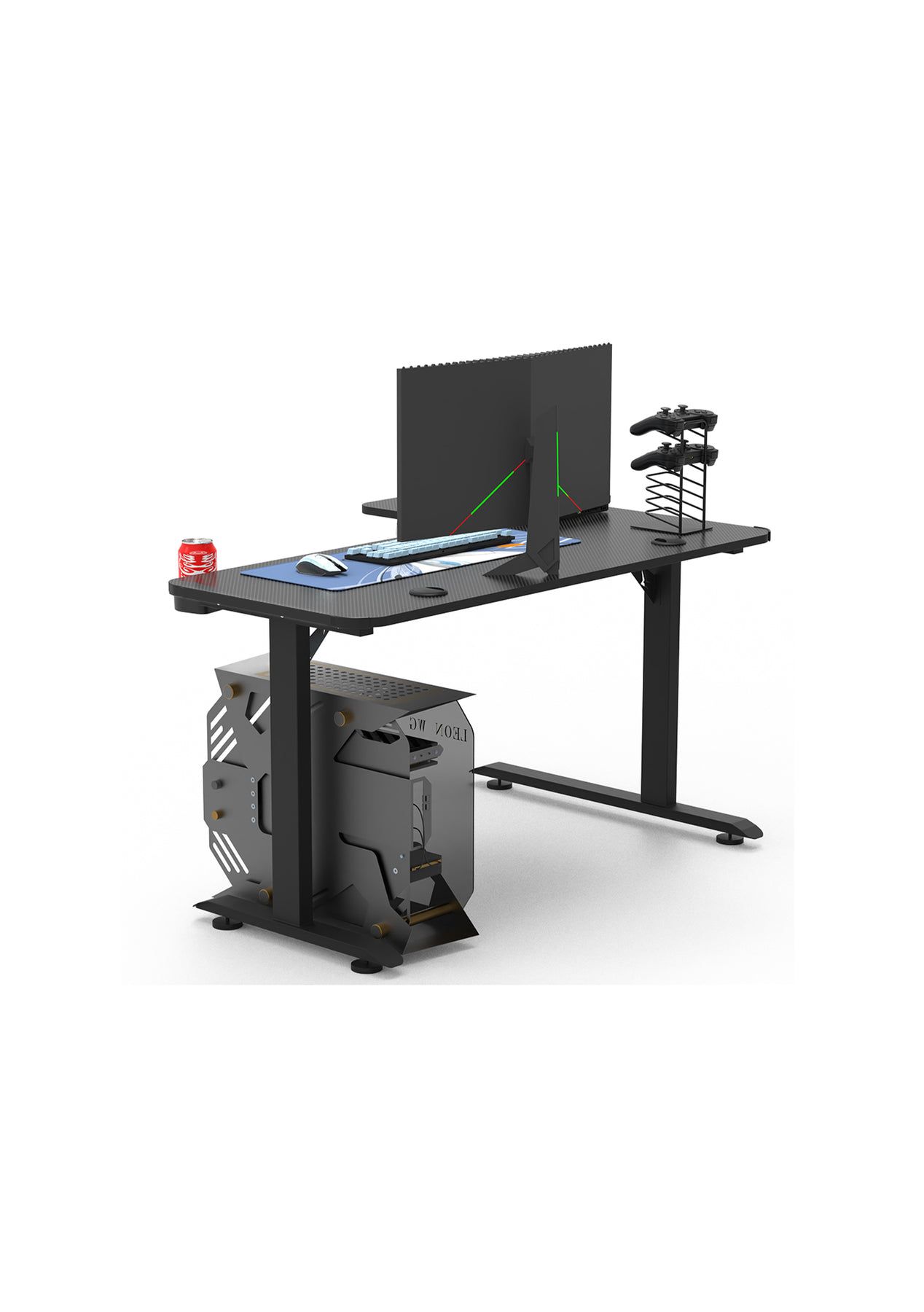 PR9284 Gaming Table LLEFT 160cm Please note: LED lights are not included. Description:Focus your attention on console gaming while keeping all gaming tools in the right place by using this Gaming Desk Computer Office Racer Table. Thanks to the heavy-duty carbon steel frame with carbon fiber textured desktop, this computer desk is strong, durable, and stable for long-lasting use. Also, it provides a spacious storage area for your electronic equipment such as your mechanical keyboard, monitors, and other gaming gear. Moreover, the headphone hooks, a cup holder, and a waterproof mouse pad work for maximum organization and gaming friendliness. This racer table can serve for working, studying, and writing. FeaturesSolid carbon steel frameErgonomic large desk, spacious storage spacecarbon fiber texture tabletopHeadphone hooks, and cup holder to keep your desktop more organizedConvenient design and multi-use ensure it can be used as a workstation or a student desk. SpecificationColor: Black Desktop: 18mm particle boardTable Legs: 2.7mm Thick Steel Foot Pad: Nylon Anti-pressure Foot PadTie Rod: Cold-rolled Steel Sheet Abrasive StampingEarphone hook, cup holderWeight capacity: 90-100kgsize: 160x(60-100)x 73-117cm left Package Content1 x Gaming Table LLEFT 160cm1 x Assembly Manual Package Dimensions:105cmx70cmx11.5cm