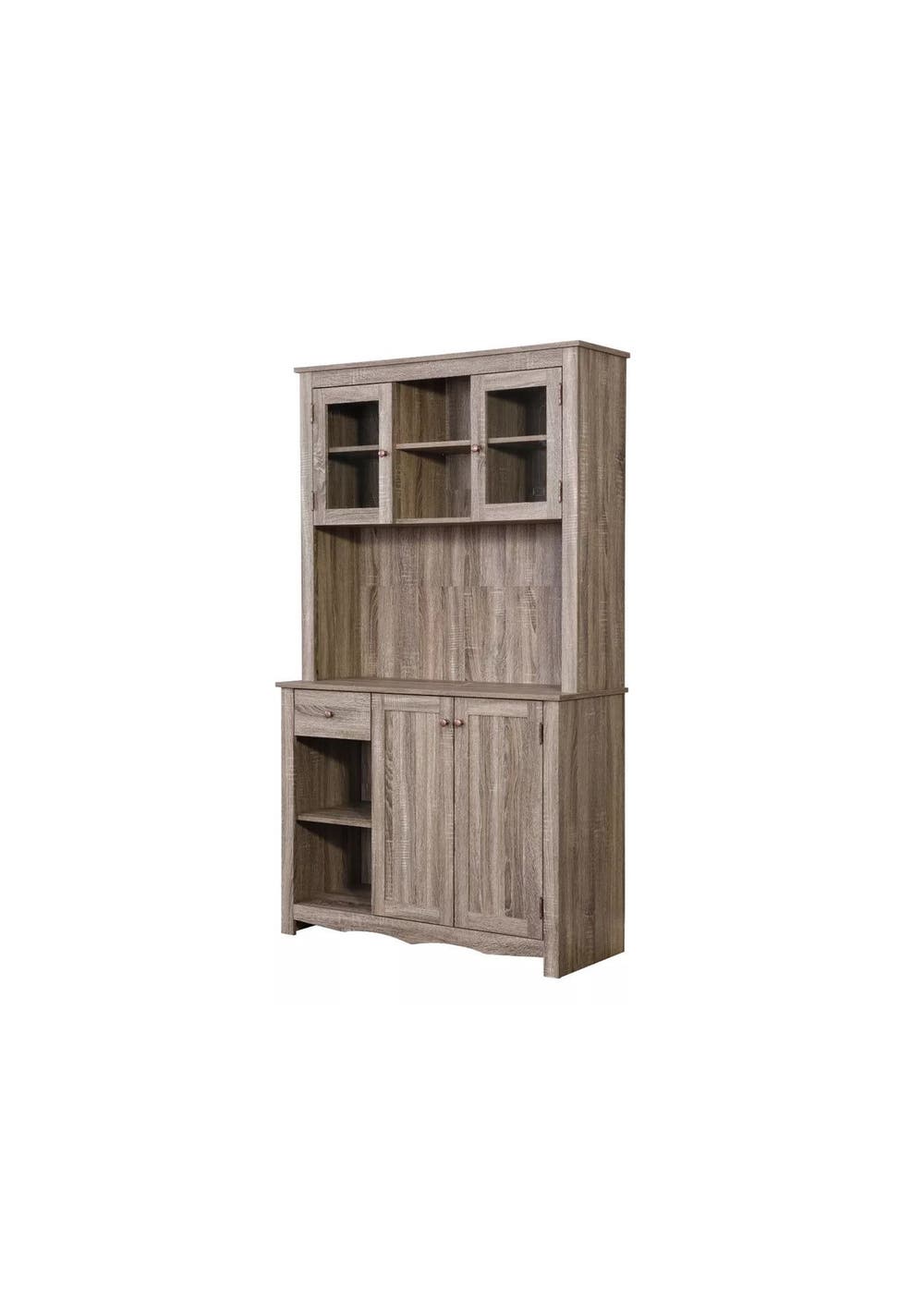 PR71849 Kitchen Cabinet Dc19 Grey The cabinet is a superb furniture storage option for any kitchen or dining space. Reminiscent of the style of the Arts and Crafts movement. The two top glass front single shelf cabinets flank an open shelved compartment ideal for the display of beautiful dishes or treasured collectibles. The spacious center niche is a fitting location to exhibit tea settings, fine china, or precious heirloom pieces. The bottom paneled two-door cabinet houses a single shelf supplying the perfect stowaway for tabletop linens. Wrapping up the multitude of storage capabilities offered by the cabinet is yet another single-shelf open compartment fitting as a convenient location for keeping dessert plates, cups, and saucers.The cabinet is the ultimate kitchen/dining furniture storage alternative adding warmth and Arts and Crafts styling to your home.Contemporary styleSolid wooden frameSingle-shelf cabinet with glass doors and open-faced shelvingMultiple storage optionsDimensions: plz see the imageAssembly requiredColor: GreyPackage Content1 x Kitchen Cabinet Dc19 Grey1 x Assembly Manual*The color displayed varies under different monitors