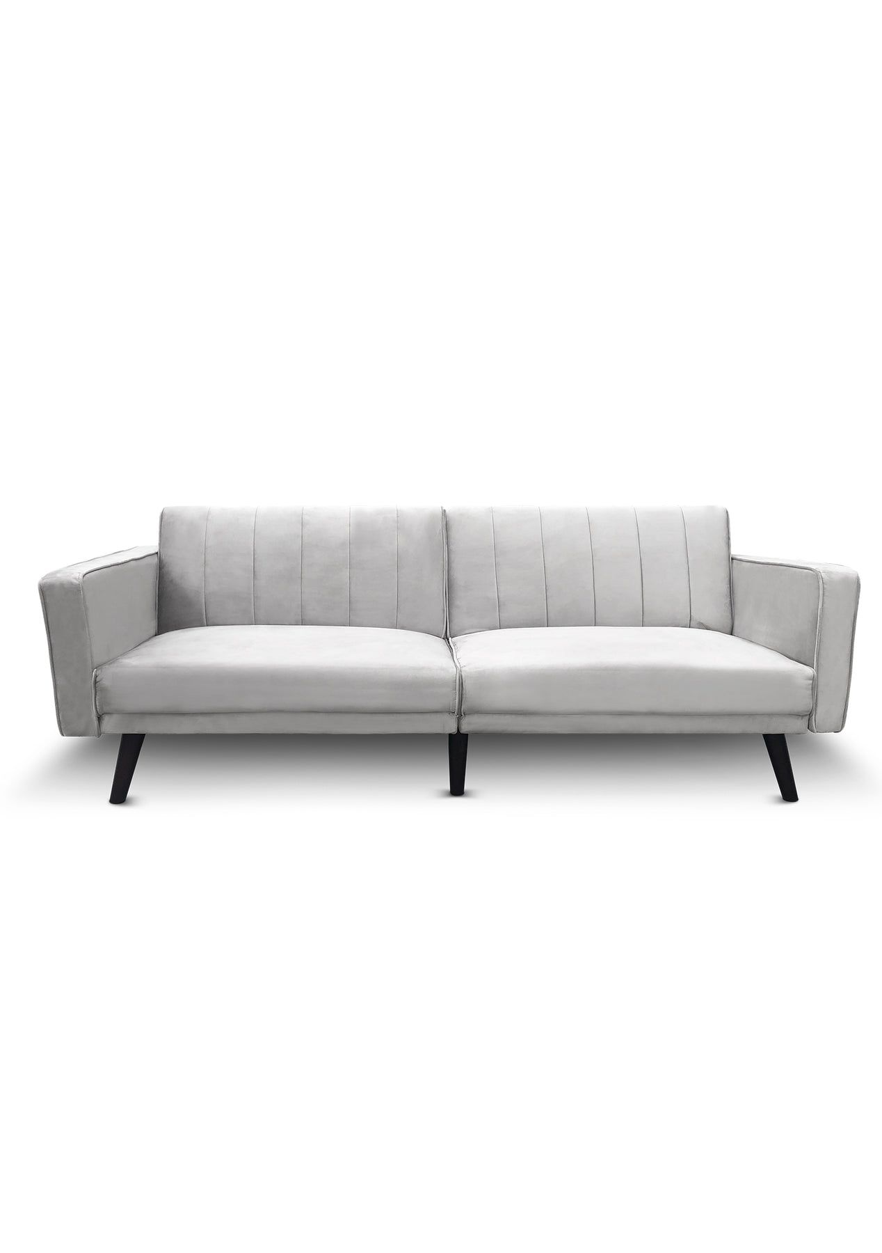 PR8998-Jersey Futon Sofa Bed Velvet Light Grey With modern design and elegant lines, the Jersey Futon Sofa Bed fits in any room style. Meticulous craftsmanship with quality Velvet fabric makes it a perfect choice for any discerning homeowner with exquisite taste. Constructed with a wood frame with a thickly padded seat and solid wood legs, it is sturdy and made to last. The backrest has three adjustable reclining positions to let you enjoy your leisure at your preferred settings so that you can read, watch TV or simply chill out with your mobile device or laptop, even a bed with two extra supporting legs. FeaturesContemporary sofa bedWood frameSolid wood legs2 extra metal support legsVelvet fabric coverHigh-density foam paddedAdjustable backrest positionsEasy assemblySpecificationColor: light greyDimension:Sofa: 210 x 82 x 78cmBed: 210 x 104cm Package Dimension: 106.5cm x 97cm x 44.5cm