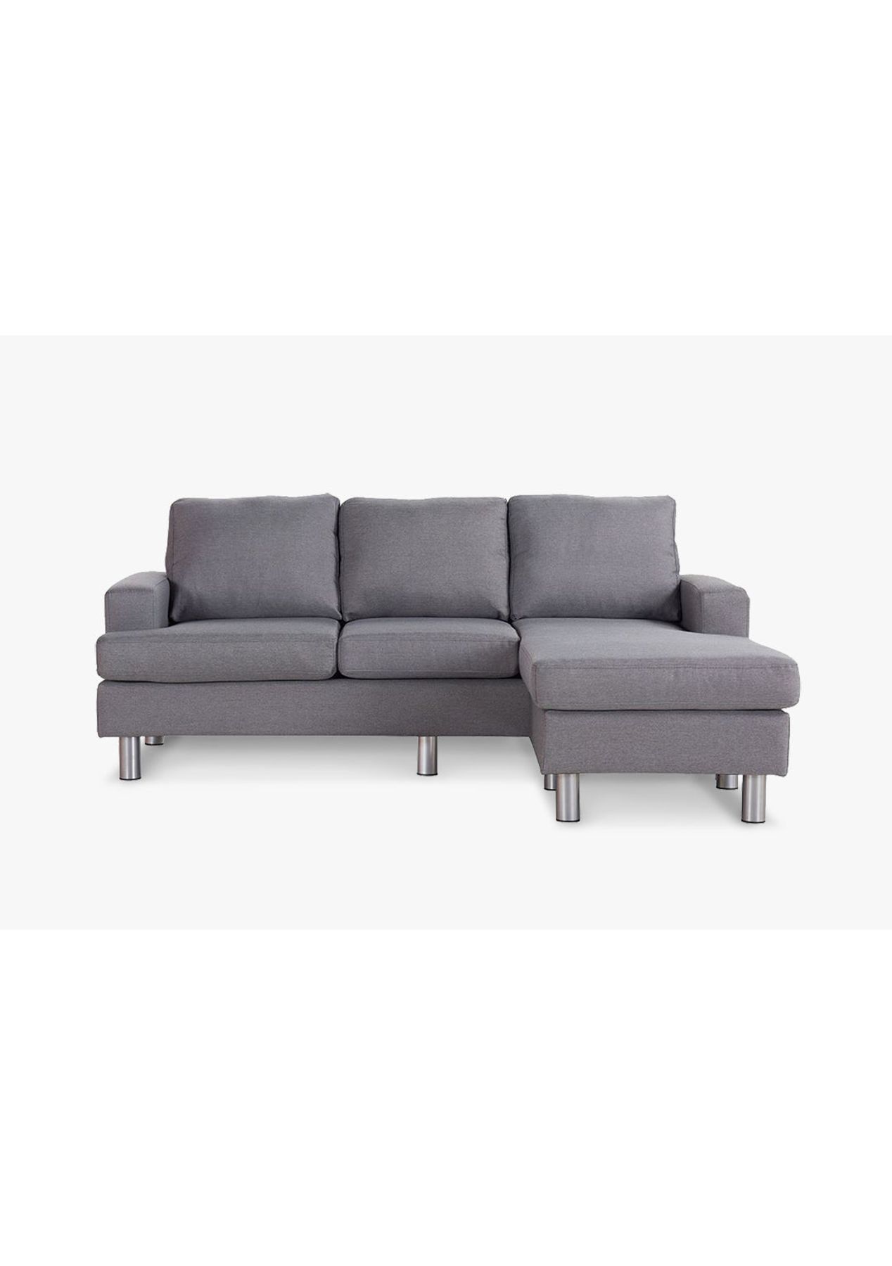 PR2068 Update your living space with practical and space-saving seating! You will truly be pleased with the Rymden 3 Seater Corner Chaise. What makes this Rymden so special is, it comes with an interchangeable chaise which allows you to have the chaise on the left or right side. Crafted with a sturdy frame of solid wood and plywood and covered with soft polyester fabric with extra thick seat cushions for superior comfort. FeaturesLive the contemporary lifestyle - with superior comfort!Highly practical and space-savingReversible chaise - left or right chaiseNeutral grey colour to work with any décorDurable solid wood and plywood frameSoft polyester fabricEasy to assembleColor: GreyOverall Dimension: 186cm x 136cm x 77cm (W x D x H) Weight Capacity: 300Kgs Height from Floor to Sofa Seat: 40cm***Note: This Rymden Sofa also comes in Black Faux Leather*** package dimension: 185cm x 75cm x 45cm