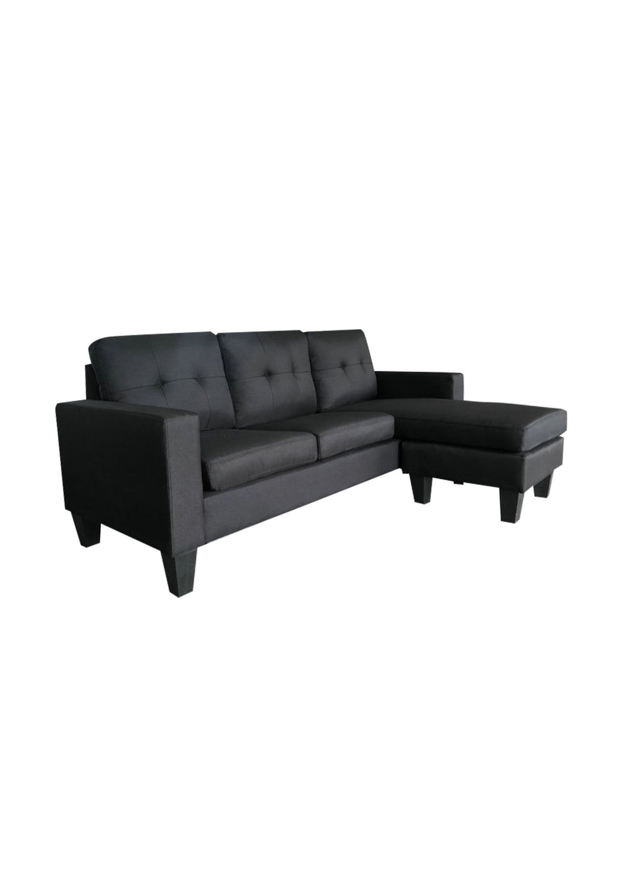 PR9067-Robyn Sectional Sofa Set With Ottoman Linen Black This sectional sofa set with an ottoman is a perfect place to lounge, watch TV or relax with family and friends. Constructed with a wooden frame, filled with certified foams, and upholstered in breathable fabric, our sofa is sturdy in every way. This sofa set can also become a straight sofa with a separate ottoman. You can put it anywhere you like to meet your different demands. Lets you enjoy your leisure in your preferred settings. Snuggle up with our Robyn Sectional Sofa Set now.FeaturesModern designSturdy wood frameSoft touch faux linen fabricThick padded cushionRemovable backrest cushion coverMetal mounting fixingsEasy assemblySpecificationsMaterial: Linen fabricFrame: WoodenLeg: PlasticColour: BlackDimension: 183 x 128 x73 cm Height from Floor to Sofa Seat: 43cm Package Dimension: 185cm x 76cm x 45cm