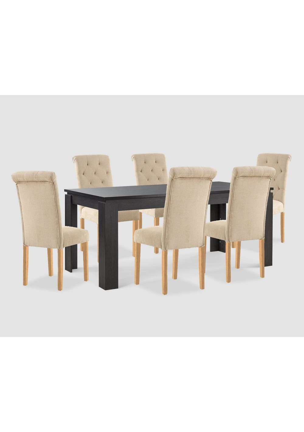 Manhattan Dining Table + Dining Chair Beige Fabric X6