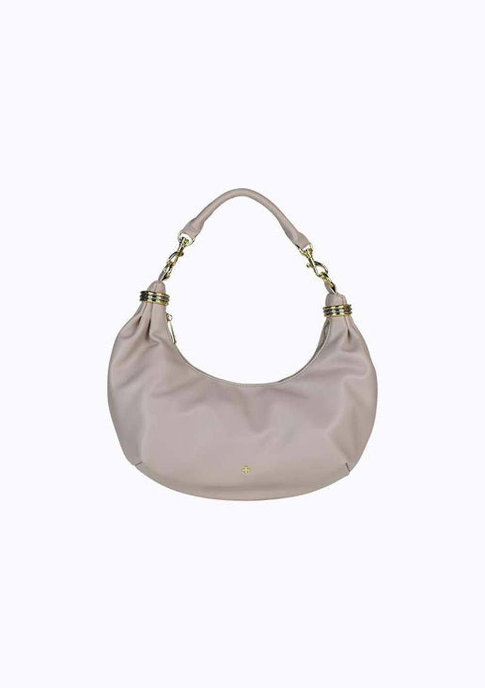 Zip main compartment Fixed shoulder strap Mixed metal ring detailing (gold and silver tones) Internal zip pocket Two internal slip pockets Gold-tone hardware Dimensions Length: 37cm (14.56") Height: 27cm (10.62") Width: 13cm (5.11") Shoulder strap drop: 26cm (10.23") Materials Outer: Polyurethane Inner: Polyester