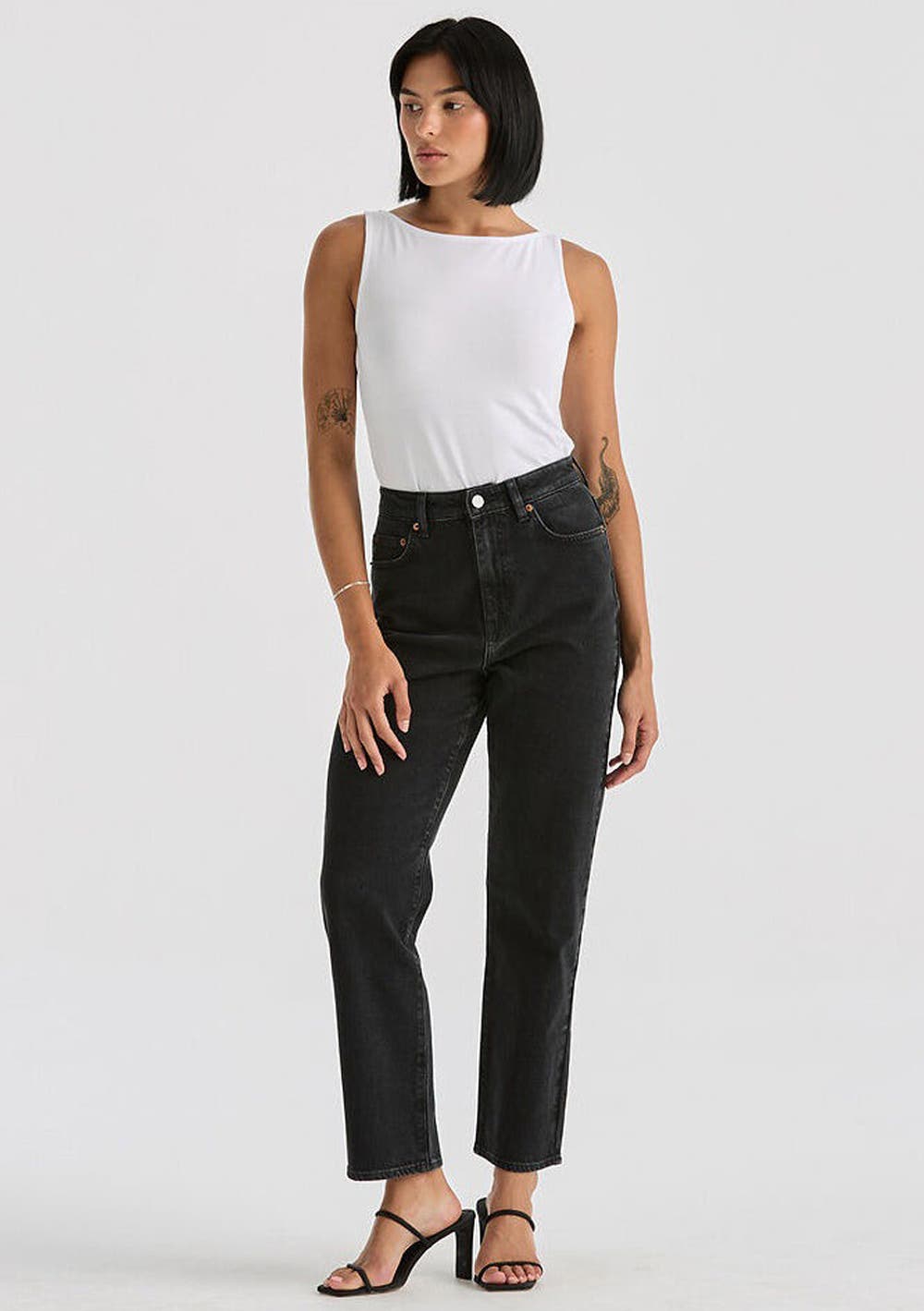 The Hi Straight is out classic straight leg jean. Designed to sit super high waisted with a slightly cropped length that hits above the ankle. Crafted in a washed black that will give you the look of vintage denim, with the comfort of hidden stretch. High Rise Straight Fit Fitted Top Block Zip Fly Tonal Stitching Paper Patch (Vegan) Available in petite sizing (5cm shorter leg length) 99% Cotton 1% Elastane